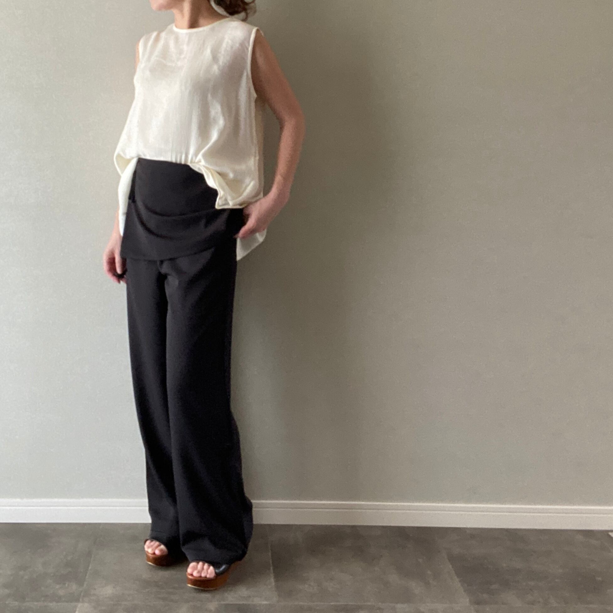 ワイドパンツ ラップスカート付き ブラック フリーサイズ【040376】