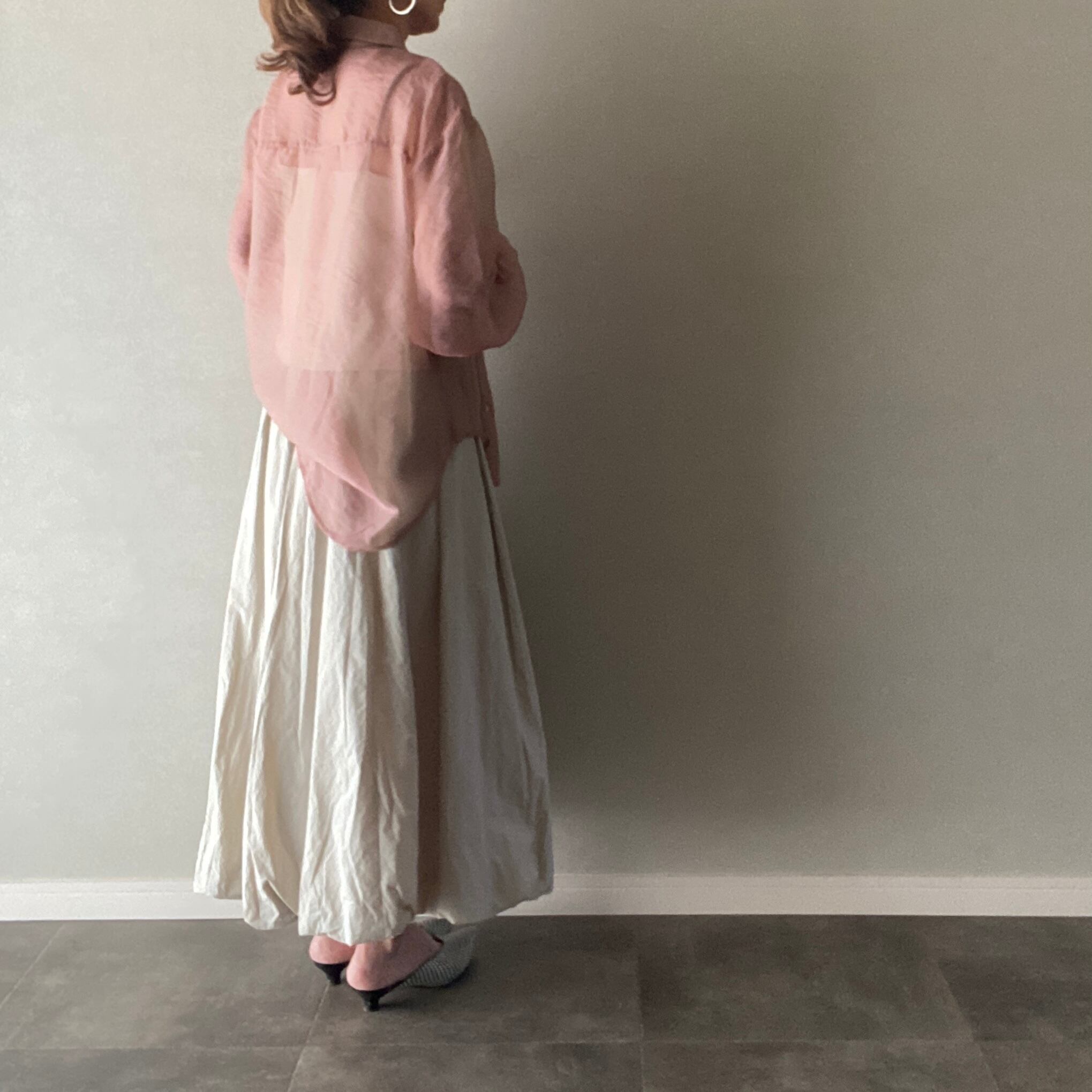 シャツ アシンメトリー シアー 長袖 スモーキーピンク フリーサイズ 【070351】