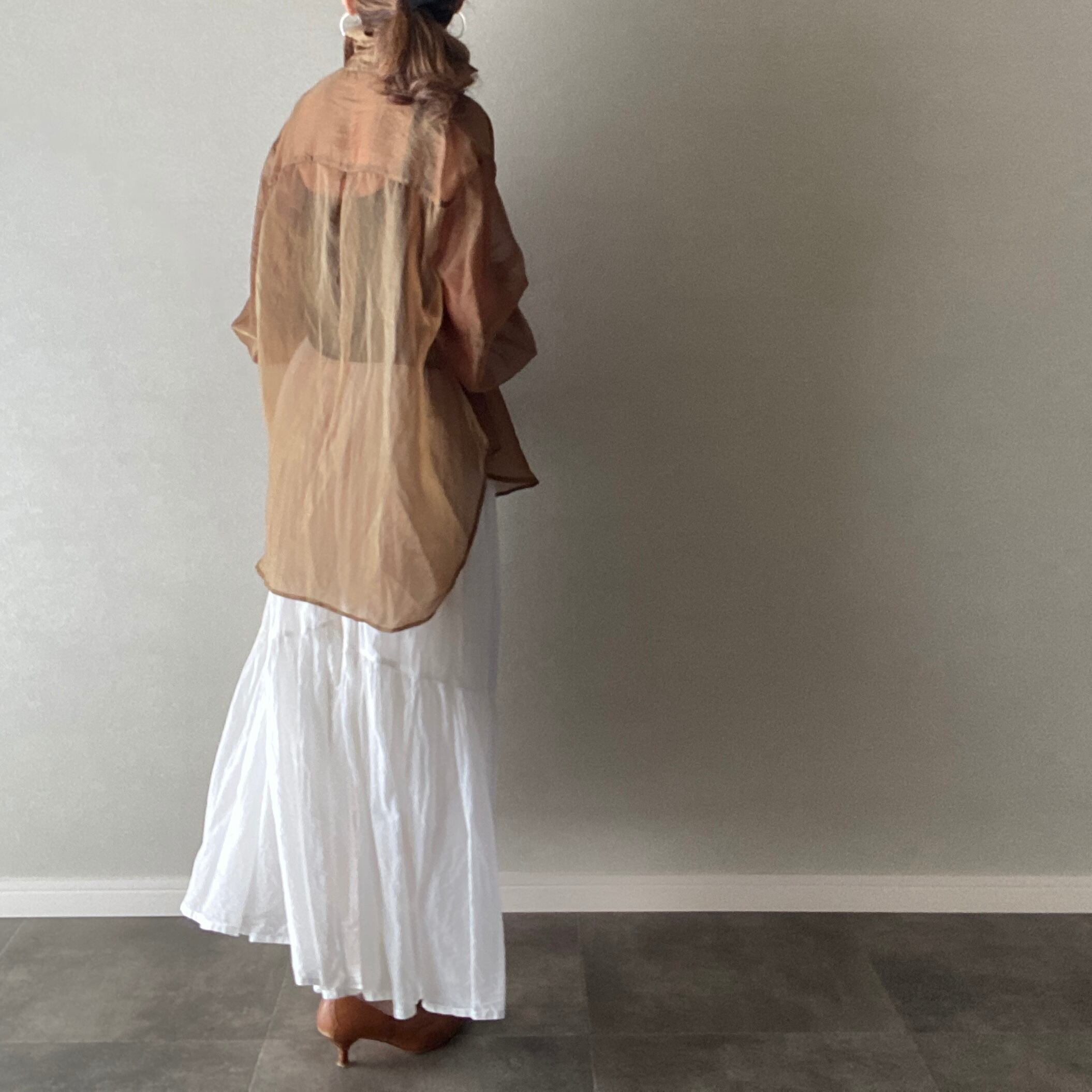 シャツ アシンメトリー シアー 長袖 ブラウン フリーサイズ 【070352】