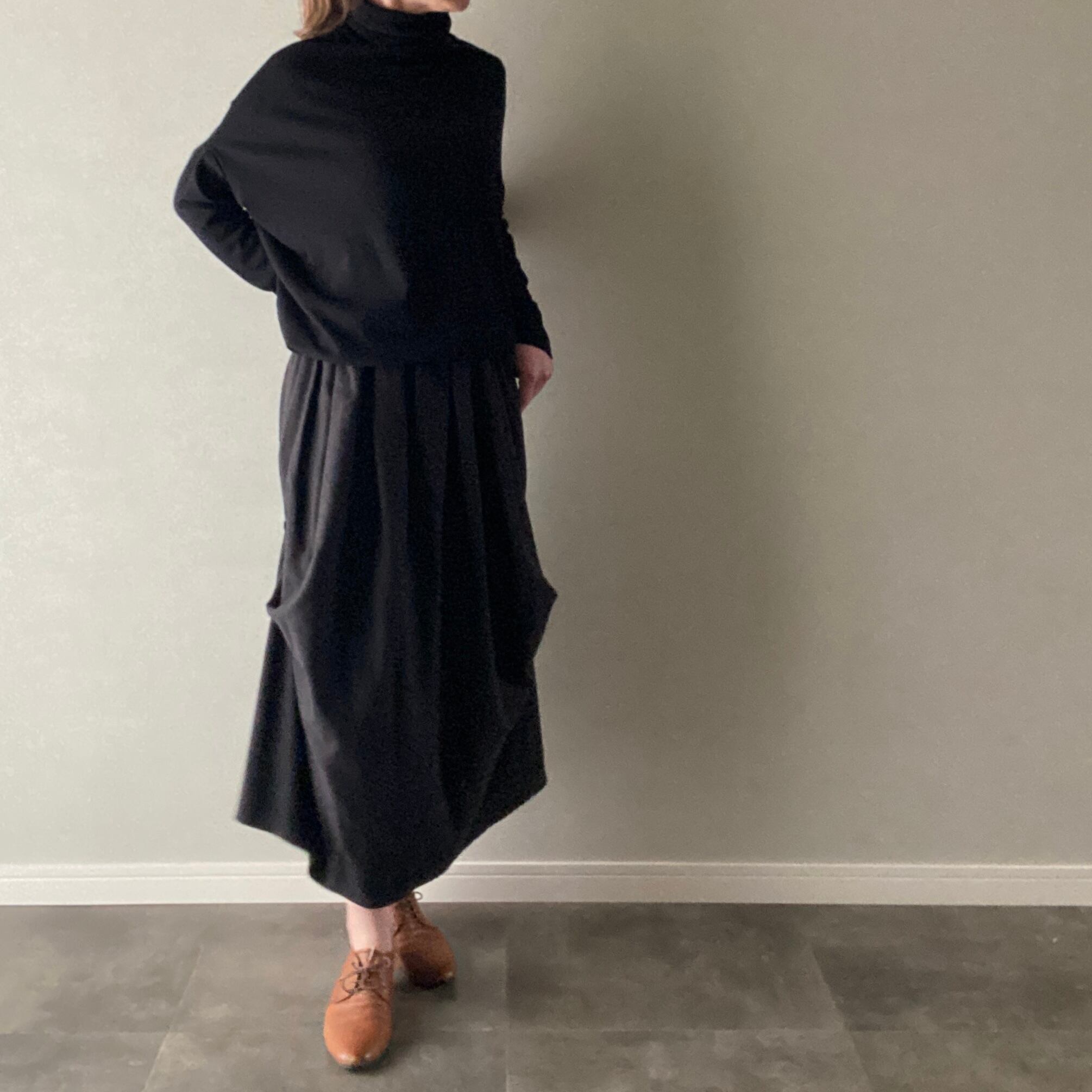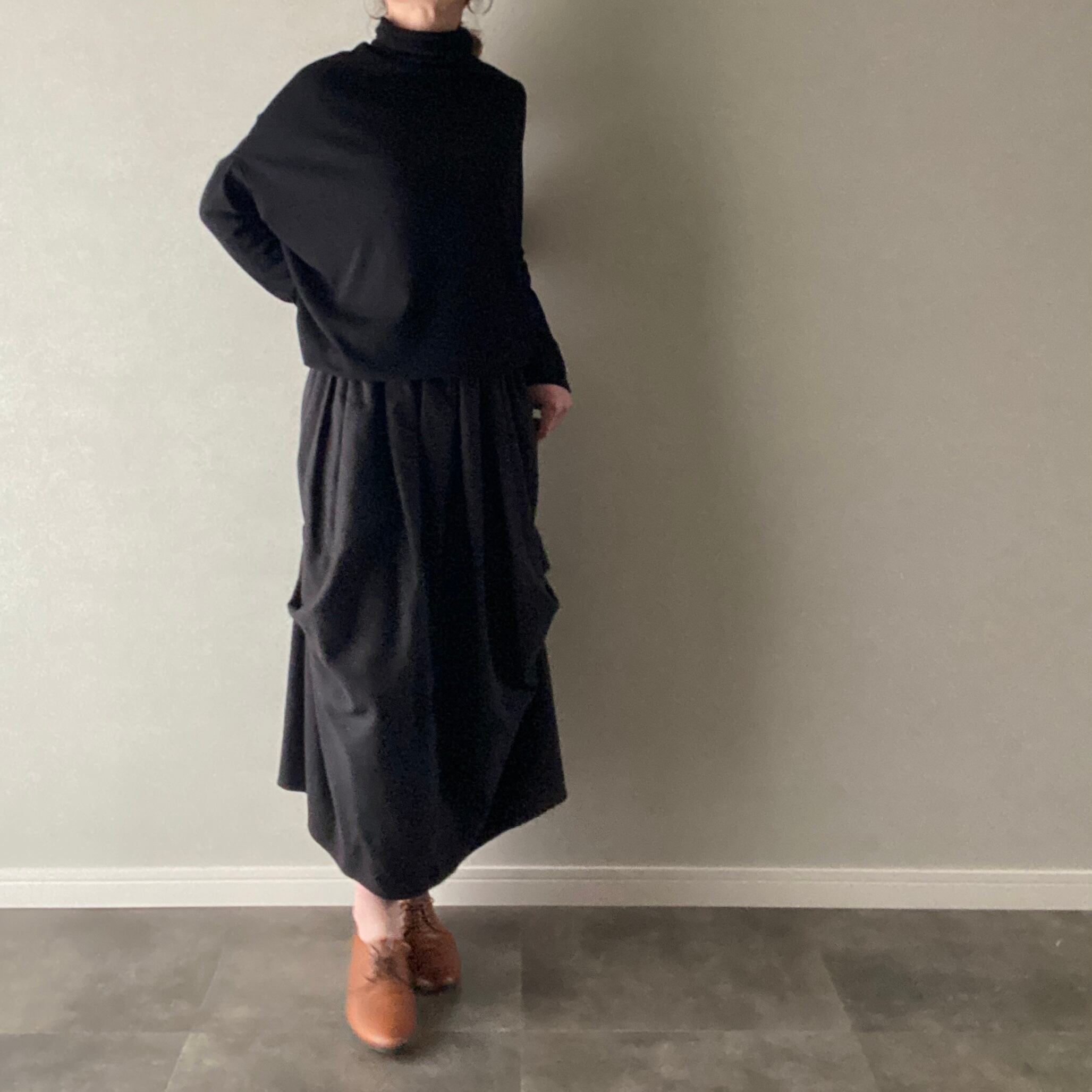 カットソー ハイネック ドレープ ブラック フリーサイズ 【030431】