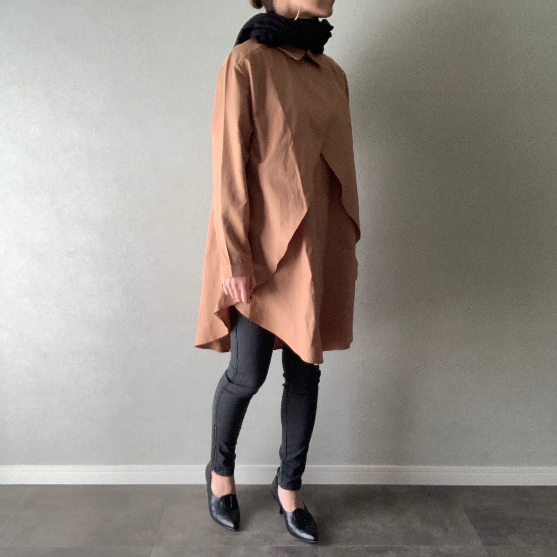 シャツ ブラウス ロング チュニック 長袖 ベージュ アシンメトリー フリーサイズ トップス