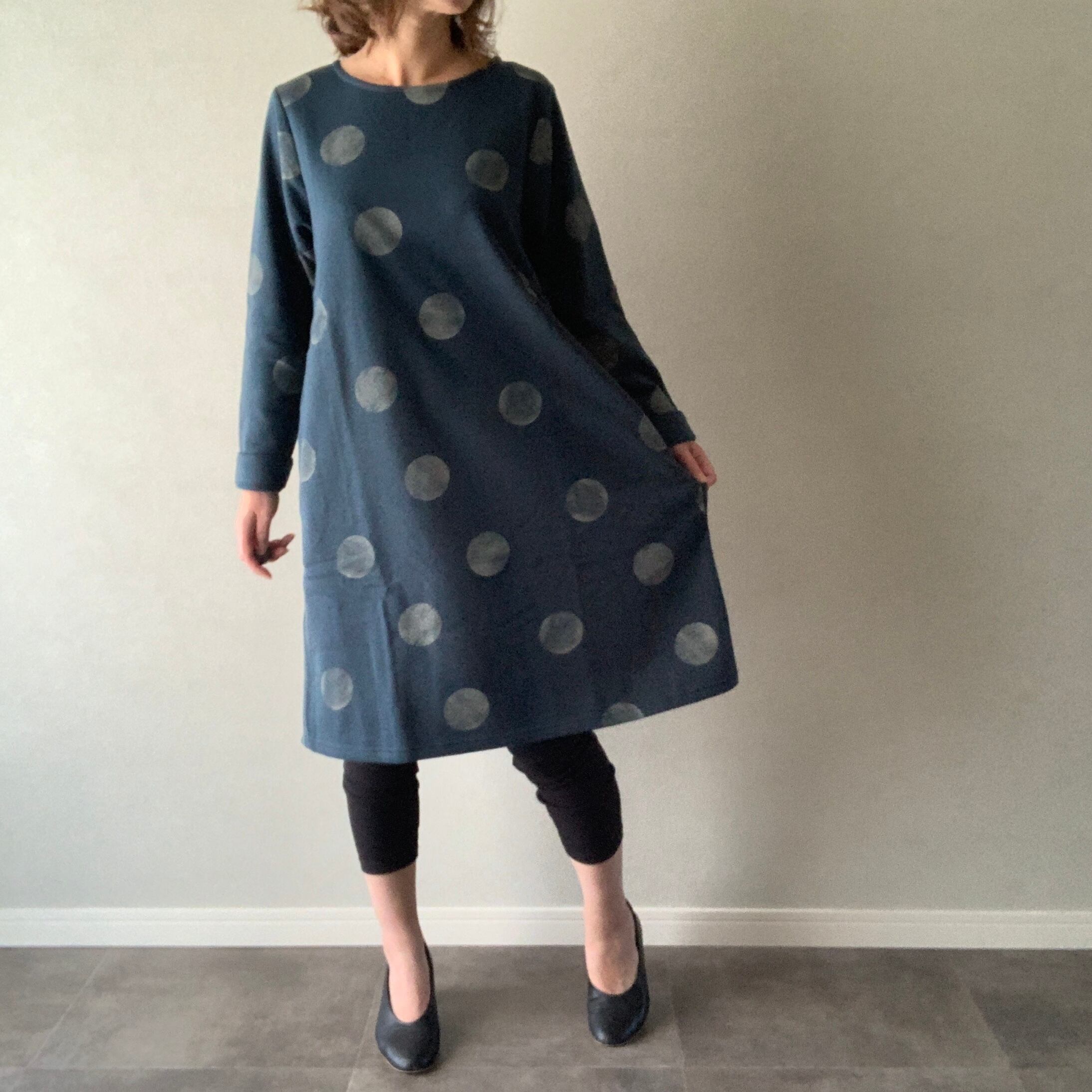 ワンピース チュニック 裏シャギー ドット ブルー Lサイズ