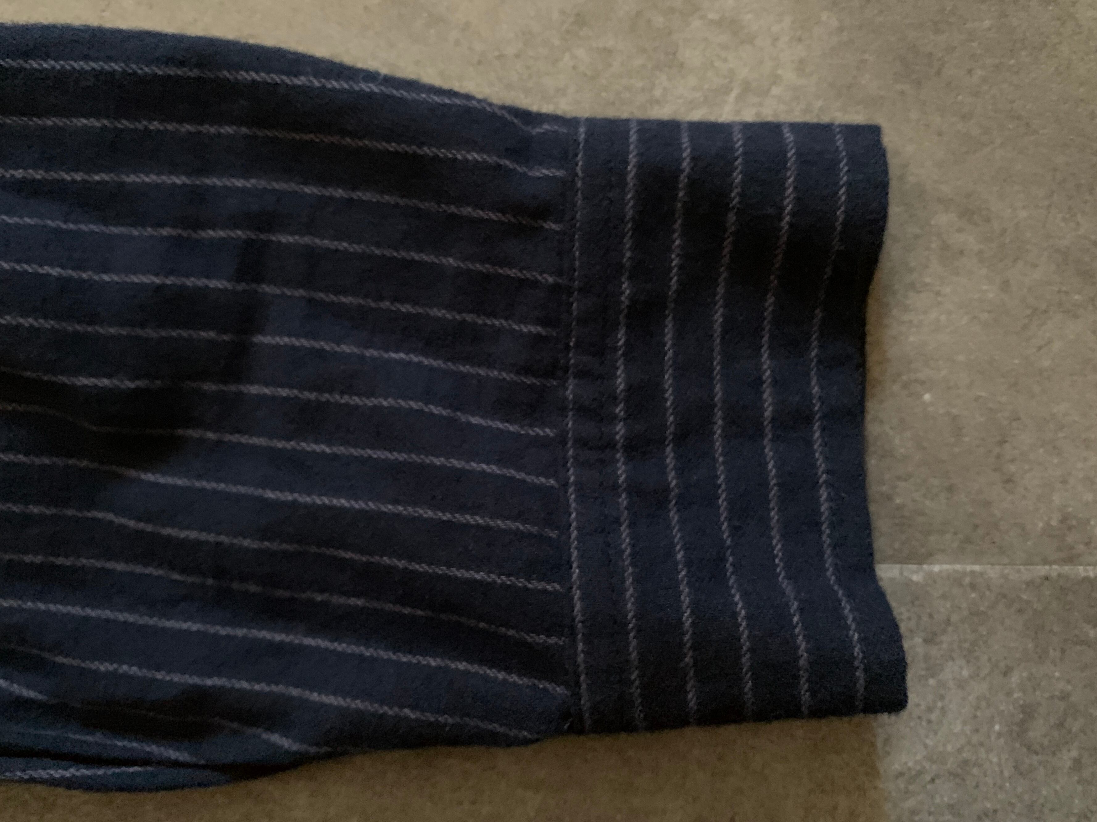 ワンピース 変形シルエット シャツ衿 ストライプ ネイビー M〜Lサイズ