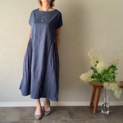 ワンピース リバーシブル ブルー&グリーン 半袖 ロング サイドギャザー フリーサイズ