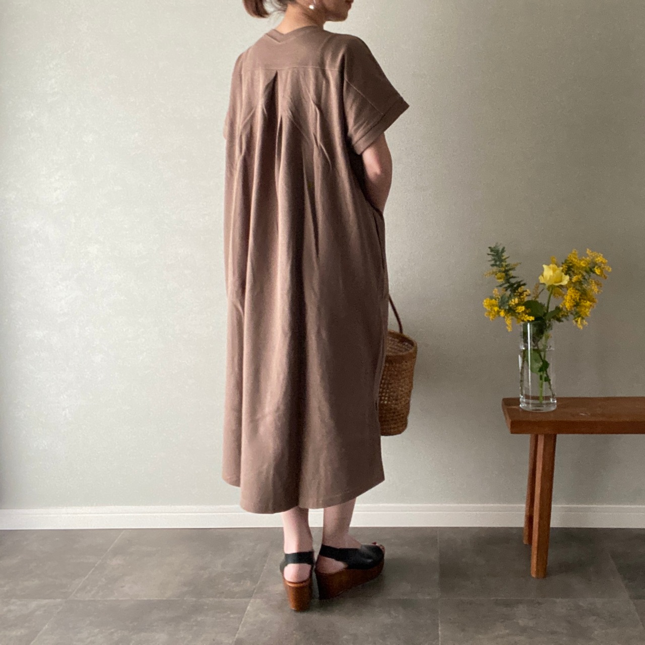 ワンピース ワッフル生地 ロング Vネック モカブラウン ゆったりサイズ Mサイズ【12307023】