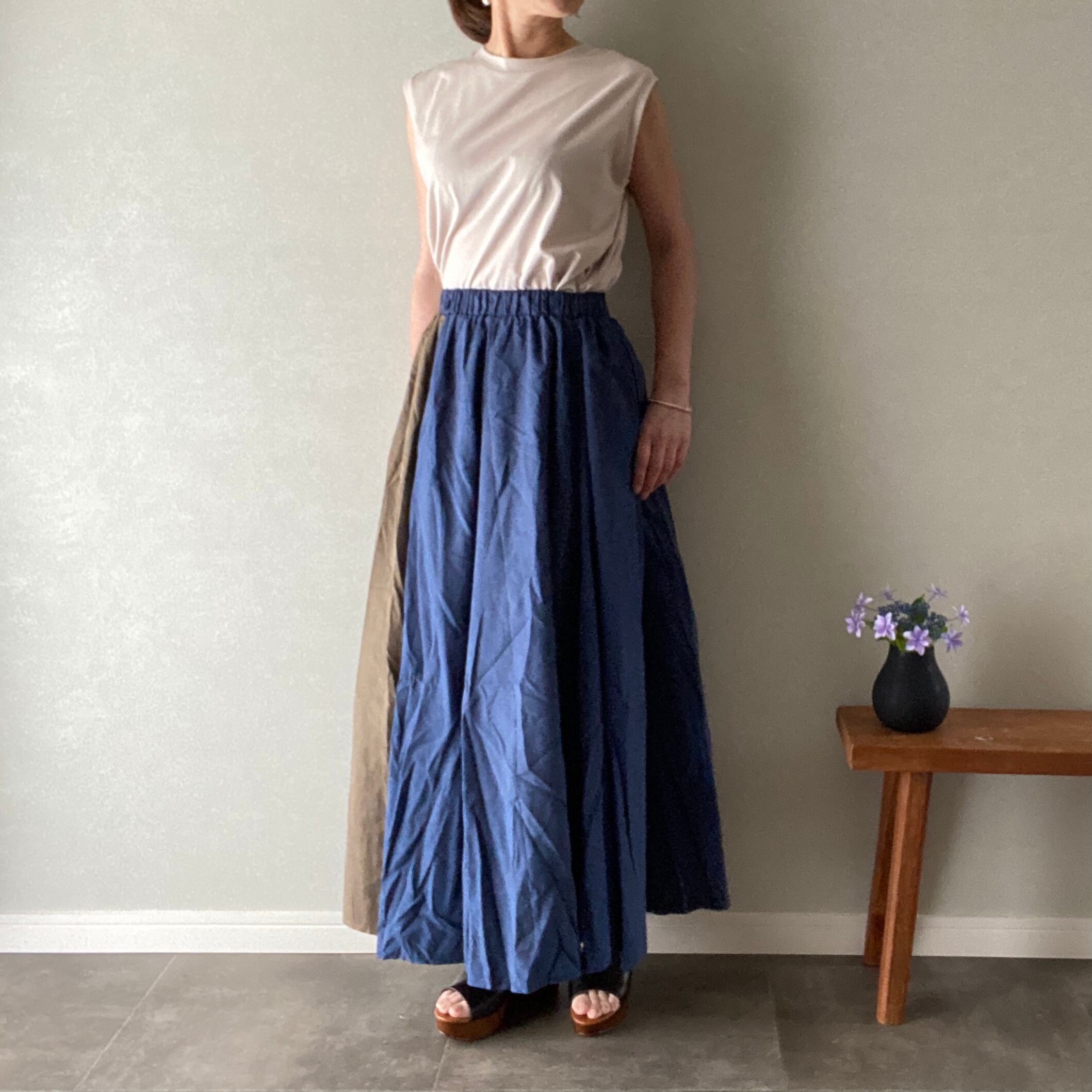 スカート バイカラー 切替 ウエストゴム ネイビー×オリーブ Mサイズ 【12600217】