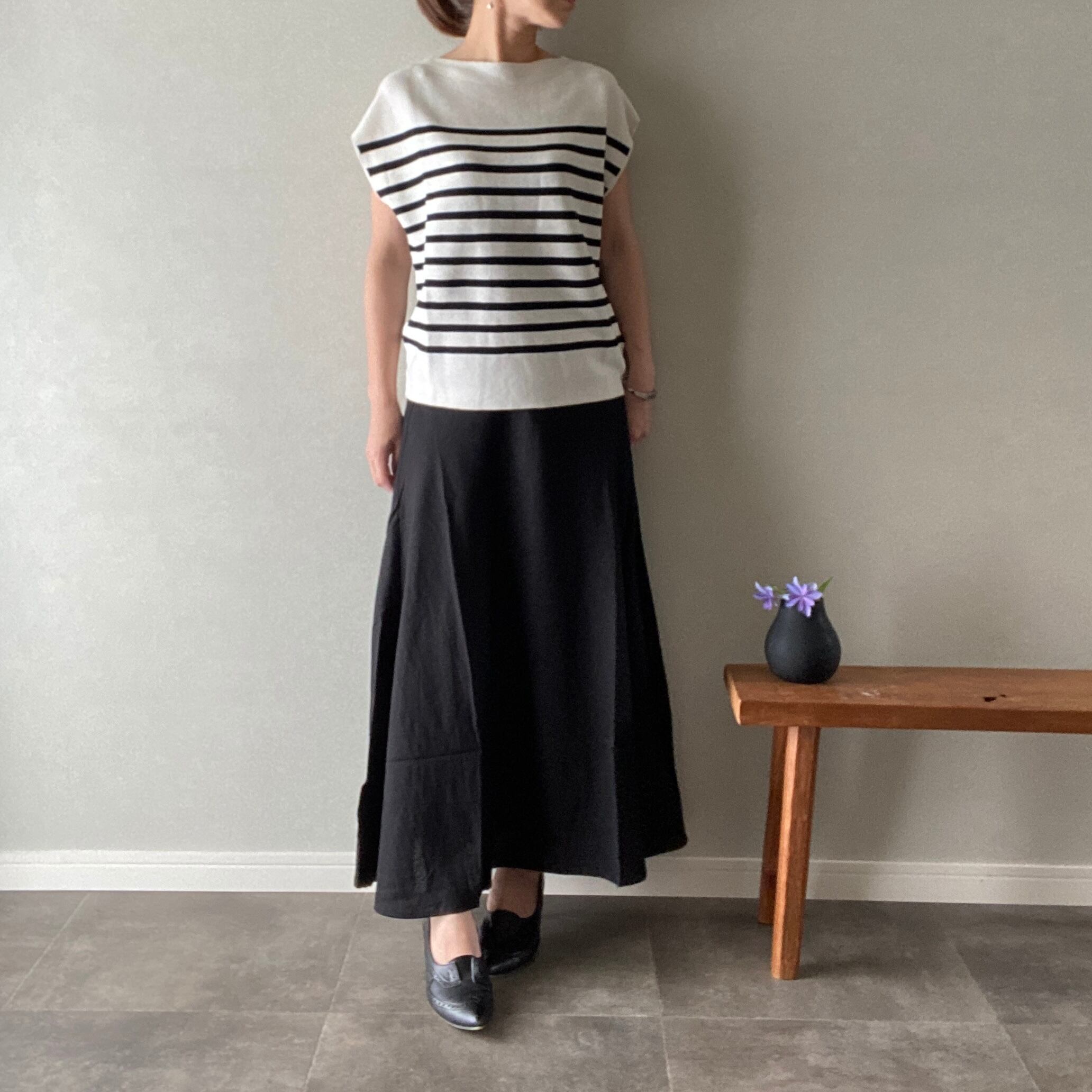 アクリルコットン ニット編み 半袖 フレンチスリーブ ホワイト×ブラック Lサイズ 【12703206】