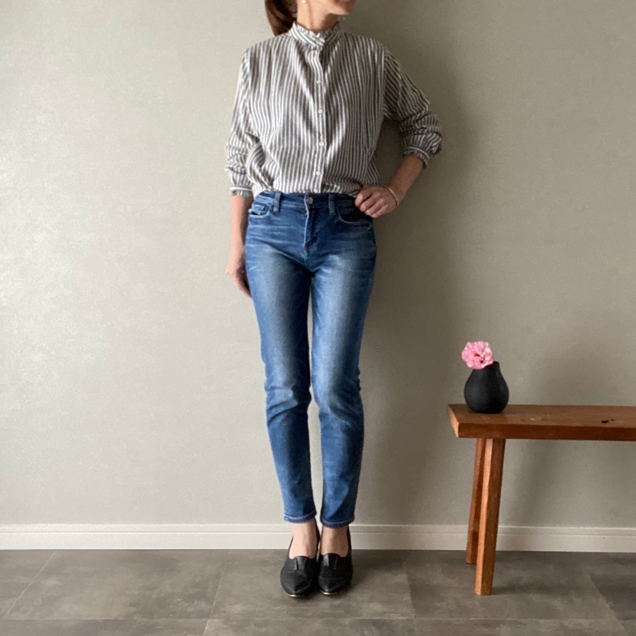 ブラウス 長袖 フリル襟 ストライプ M〜Lサイズ【12902002】