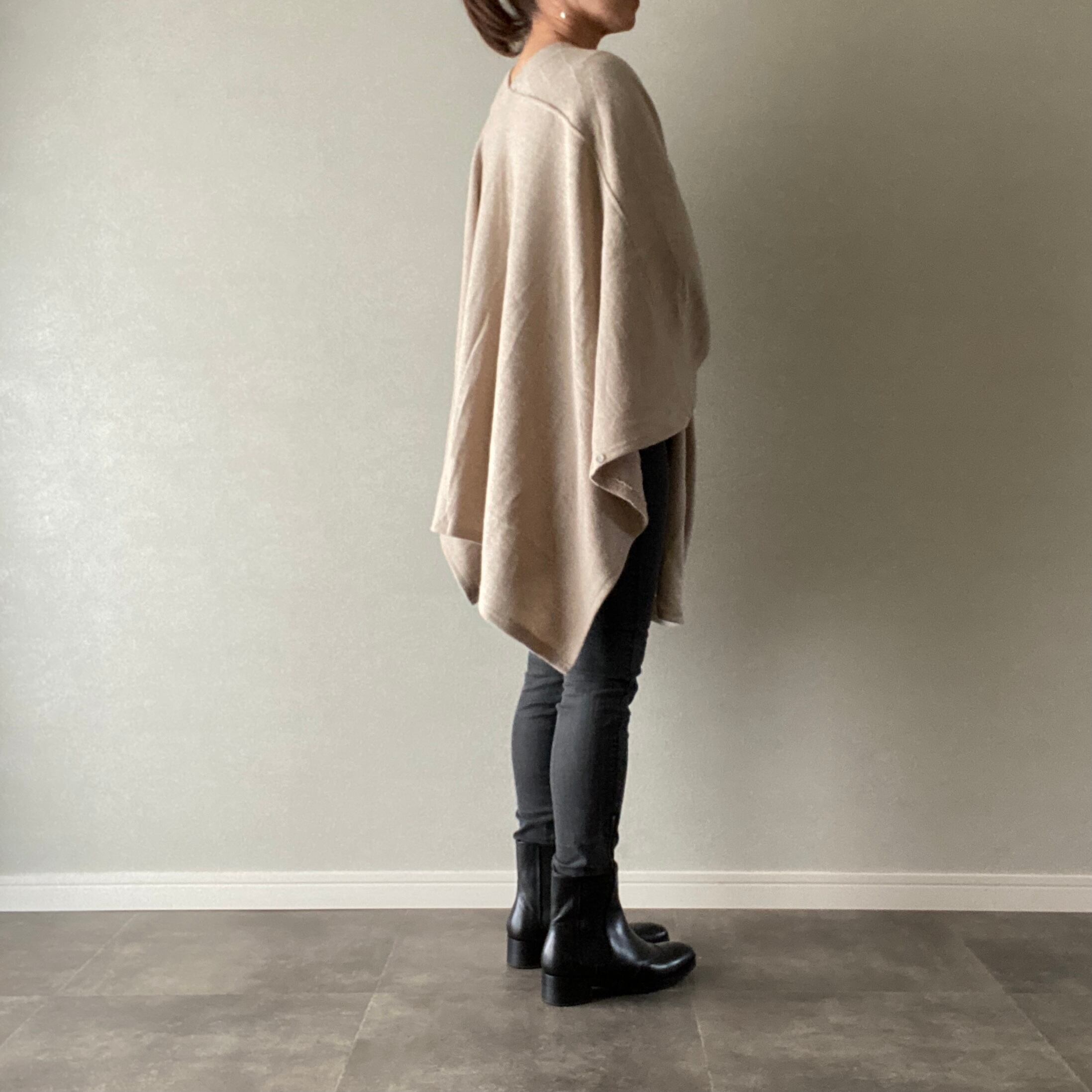 ニット 変型 カーディガン ポンチョ 羽織り ボタン ベージュ フリーサイズ 【12010209】