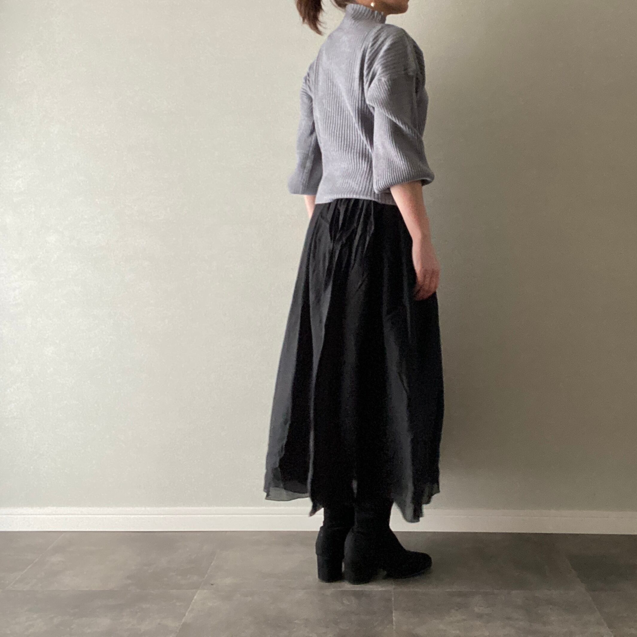 ニット ハイネック 長袖 バルーン袖 リブ 柔らか素材 グレー フリーサイズ 【22103122】