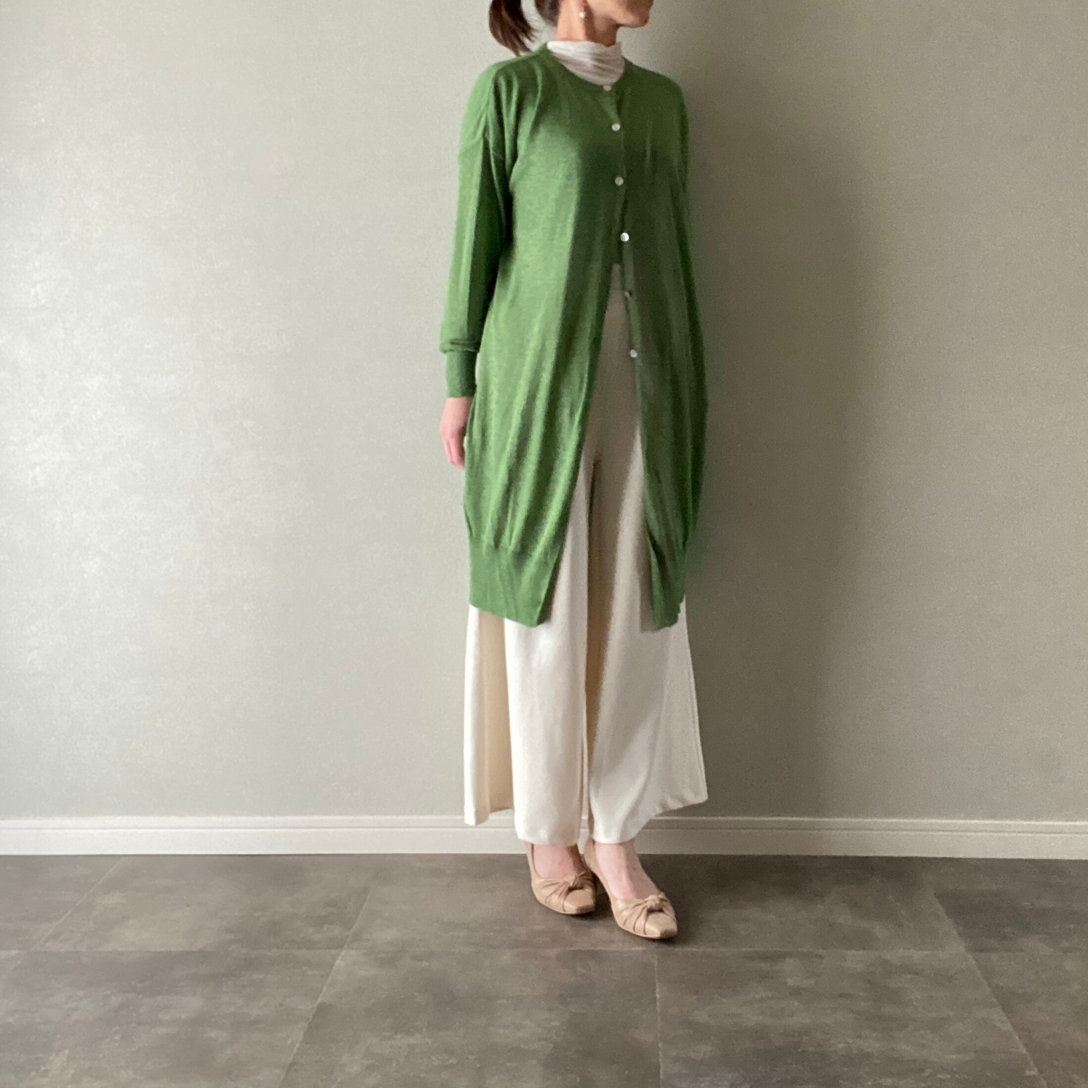 キレイ色♪ カーディガン ニット ロング クルーネック グリーン フリーサイズ【22028106】