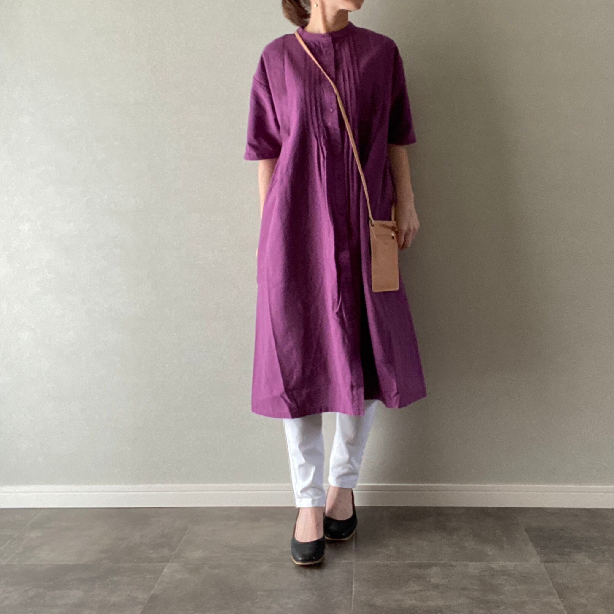 ワンピース&羽織り 2WAY ピンタック 綿麻 半袖 パープル フリーサイズ【22402110】