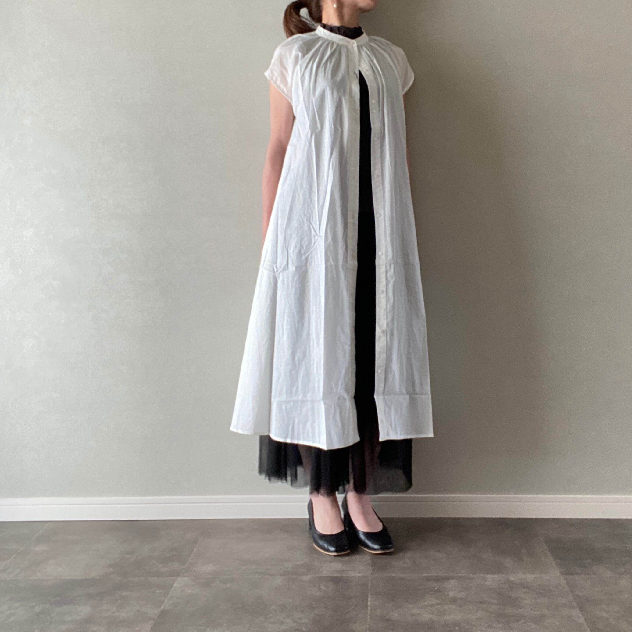 シャツワンピース 2way フレンチスリーブ フレア ホワイト Mサイズ 【22403107】