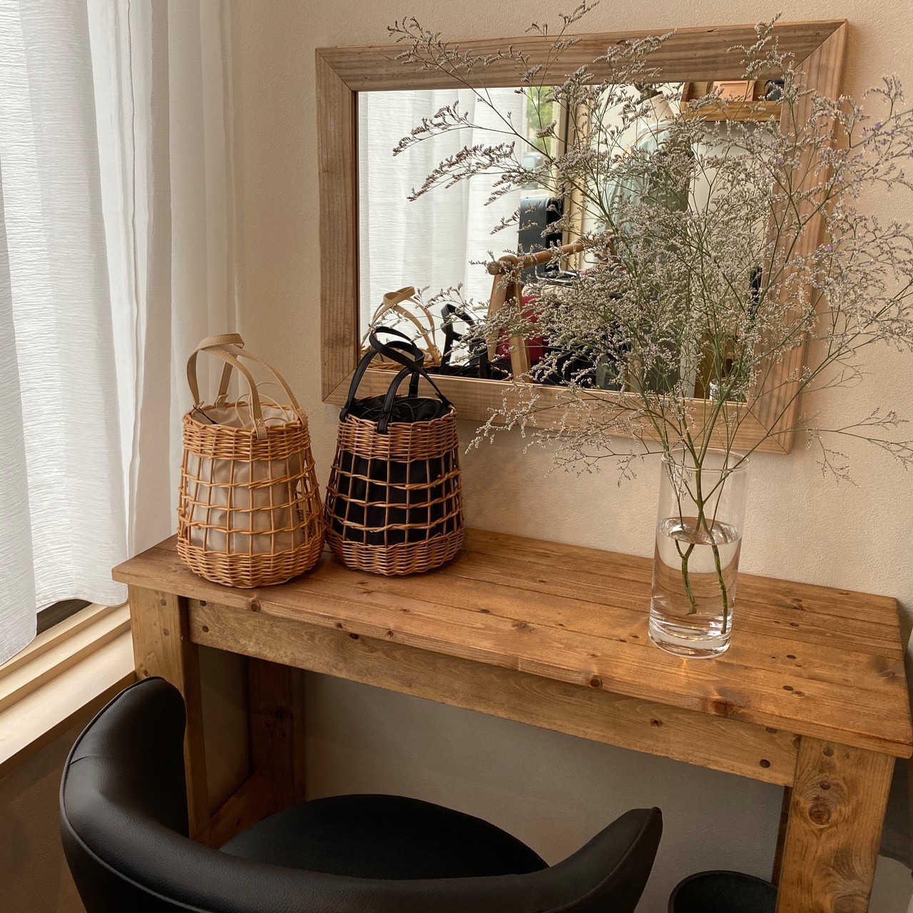 かごバッグ 巾着バッグ 浴衣用バッグ 柳編み バスケット 白 黒【22603101】