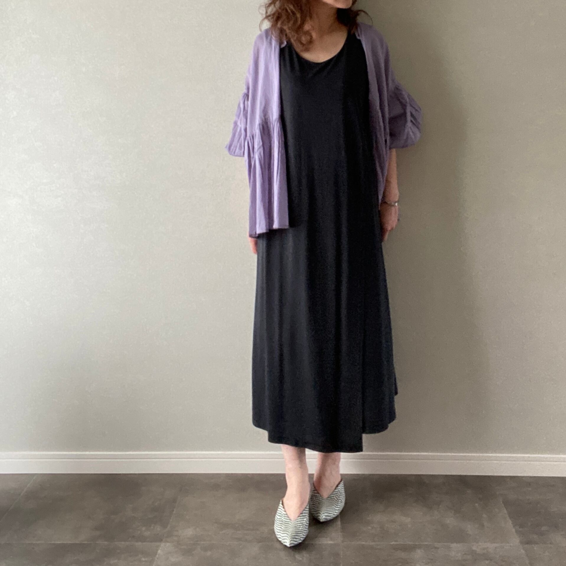 2way ブラウス 羽織り 七分袖 ギャザー パープル フリーサイズ 【22609202】