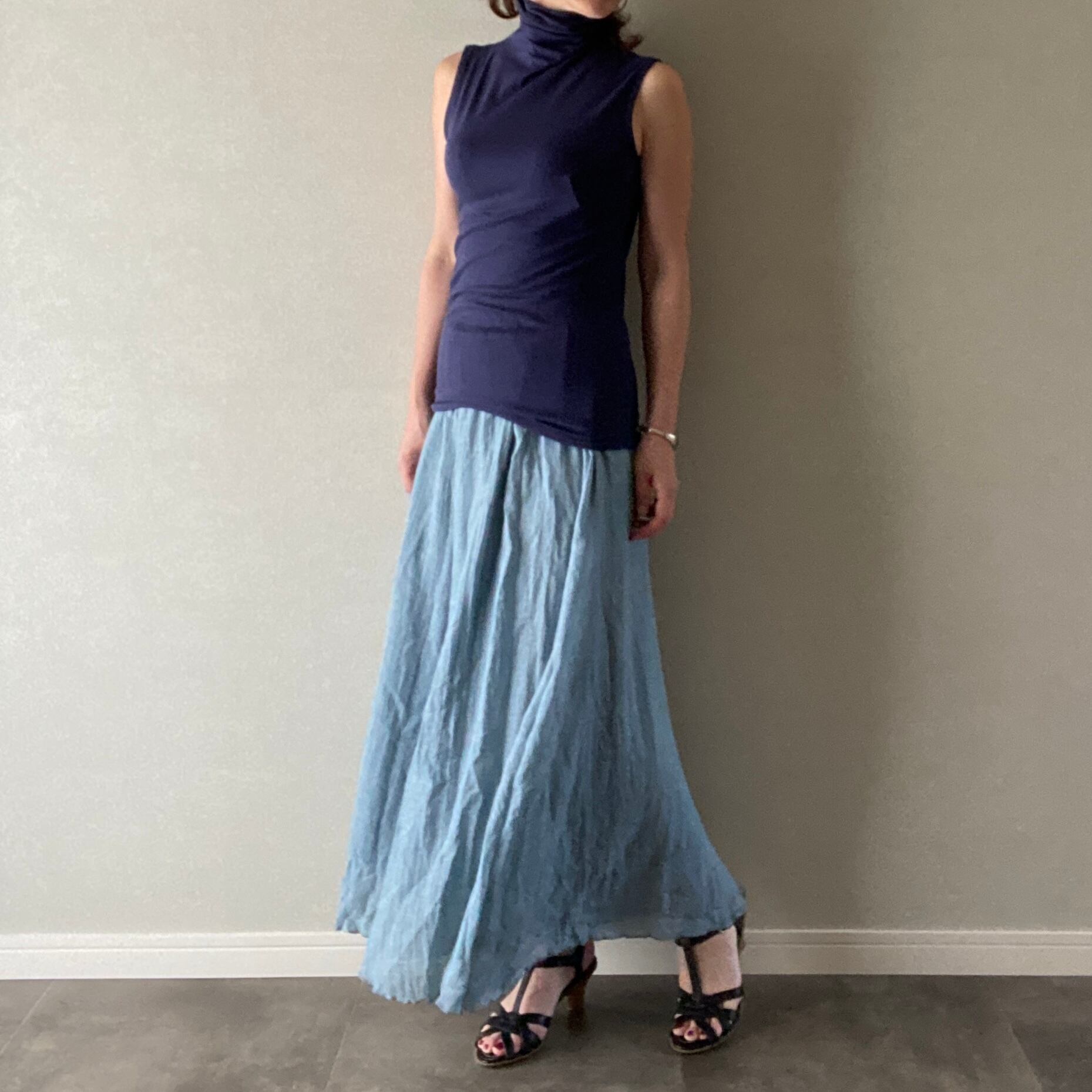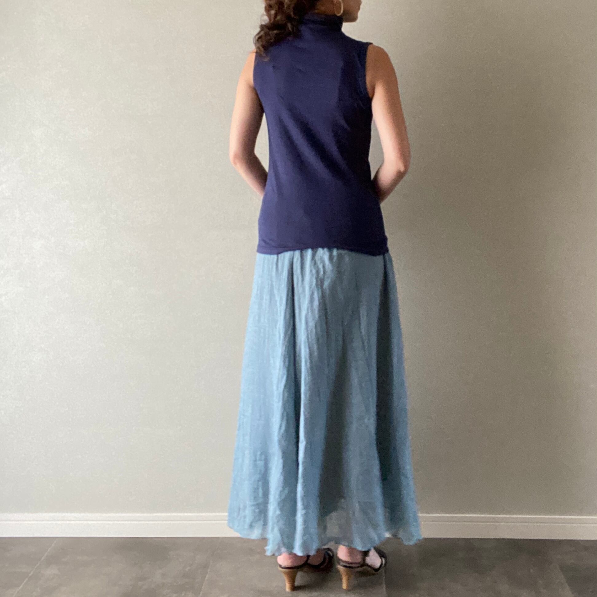 カットソー ノースリーブ タートルネック 薄手 柔らか素材 ネイビー Mサイズ 【22706204】