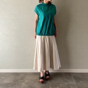 カットソー フレンチスリーブ スタンドカラー ギャザー グリーン フリーサイズ【22706202】