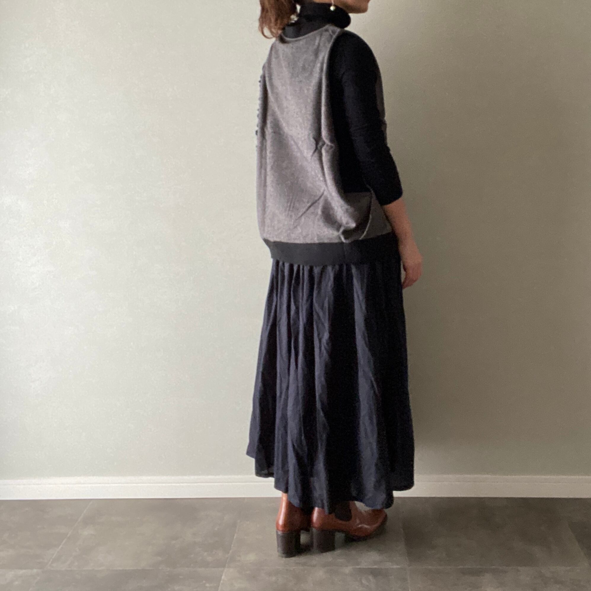 オシャレ☆ベスト レトロ ゆったり チャコール×ブラック フリーサイズ 【22015011】