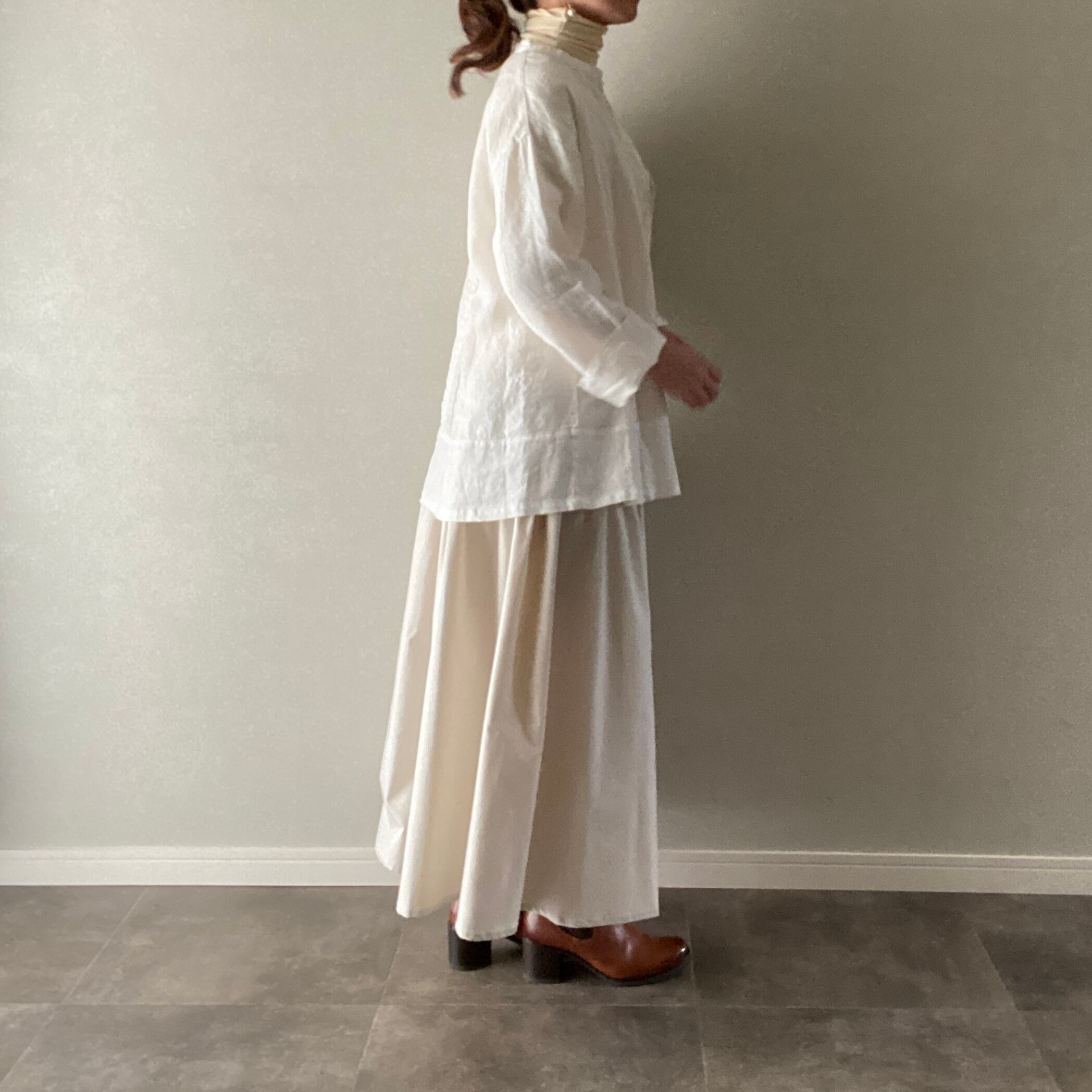 ロングスカート ギャザー ウエストゴム アイボリー フリーサイズ【22011201】