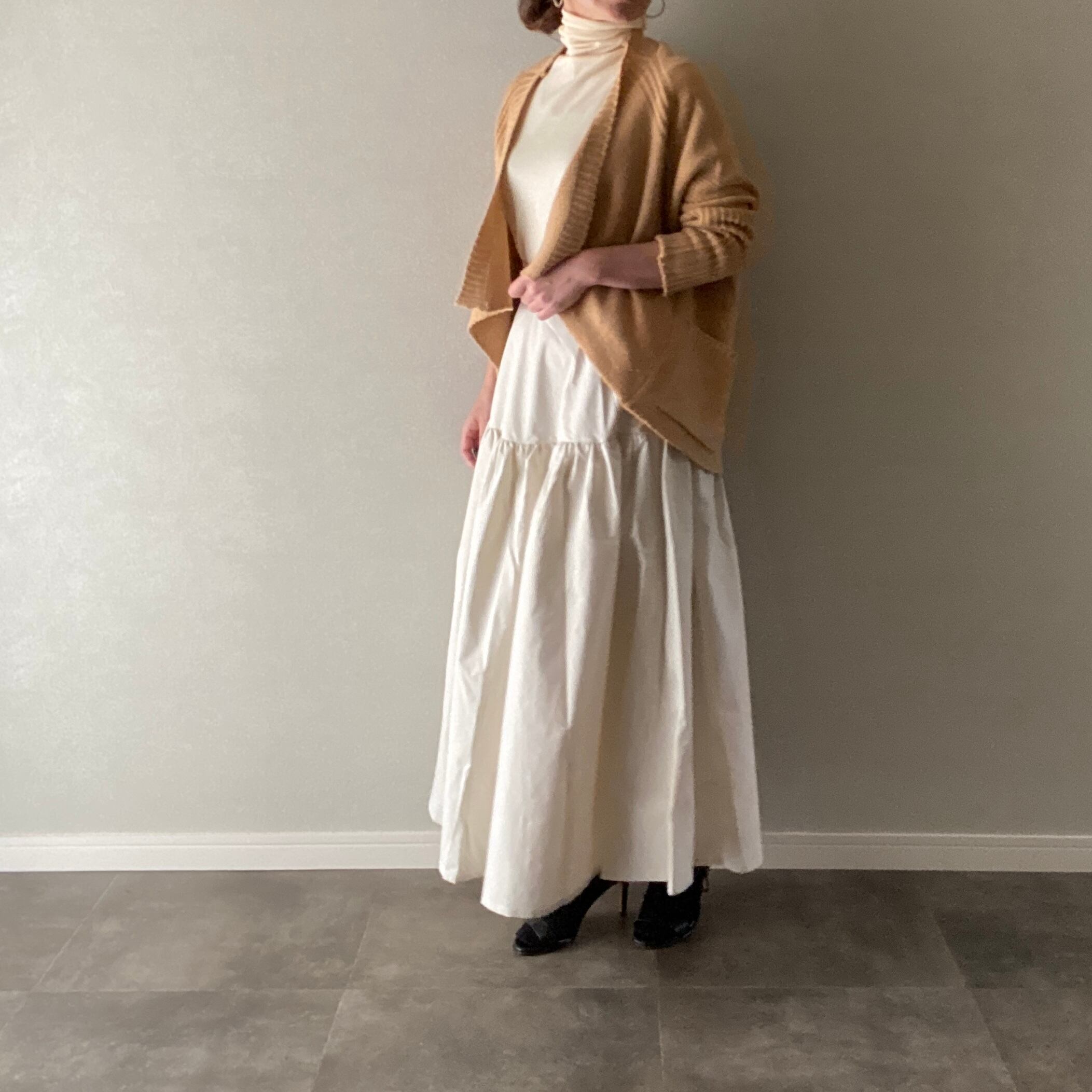 ニット 変型 カーディガン ショールカラー ベージュ フリーサイズ 【22110106】