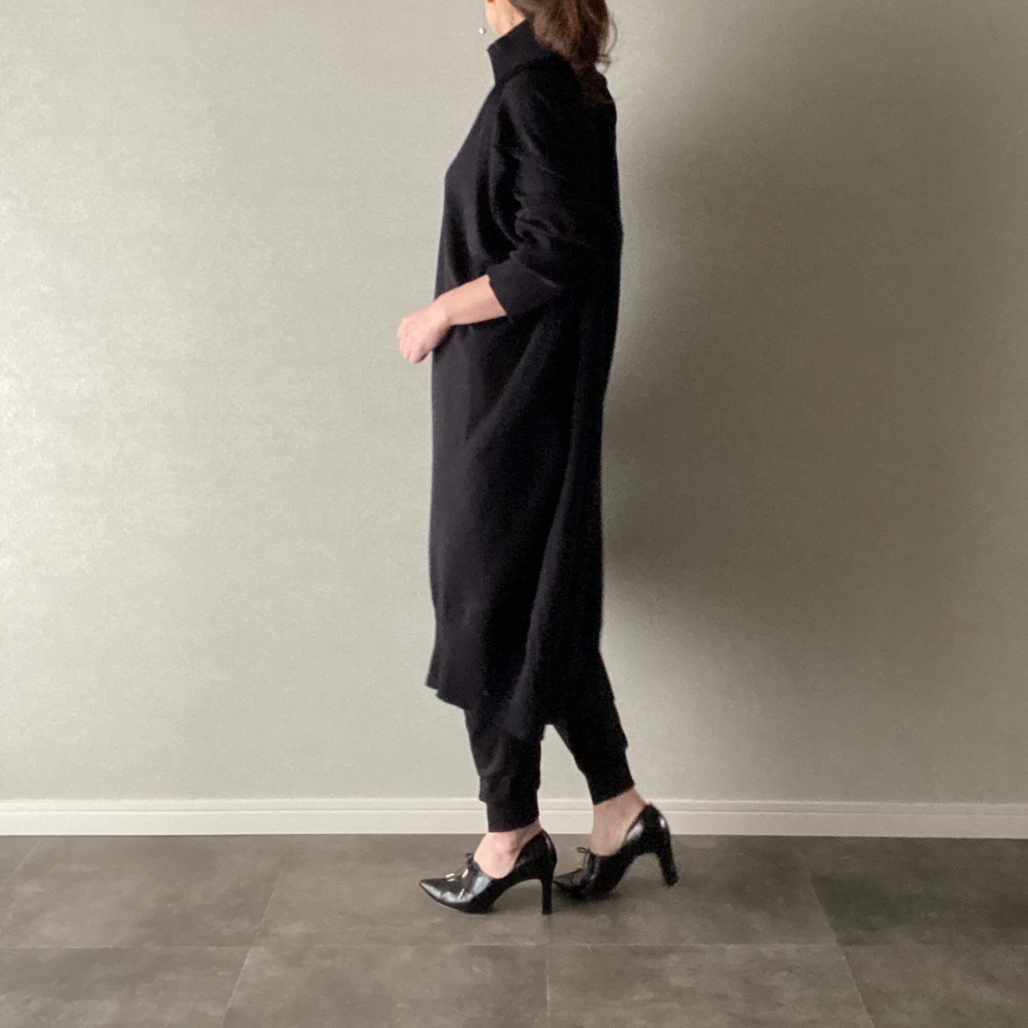 【再入荷】ニット ワンピース タートル チュニック ブラック フリーサイズ 【3101144】