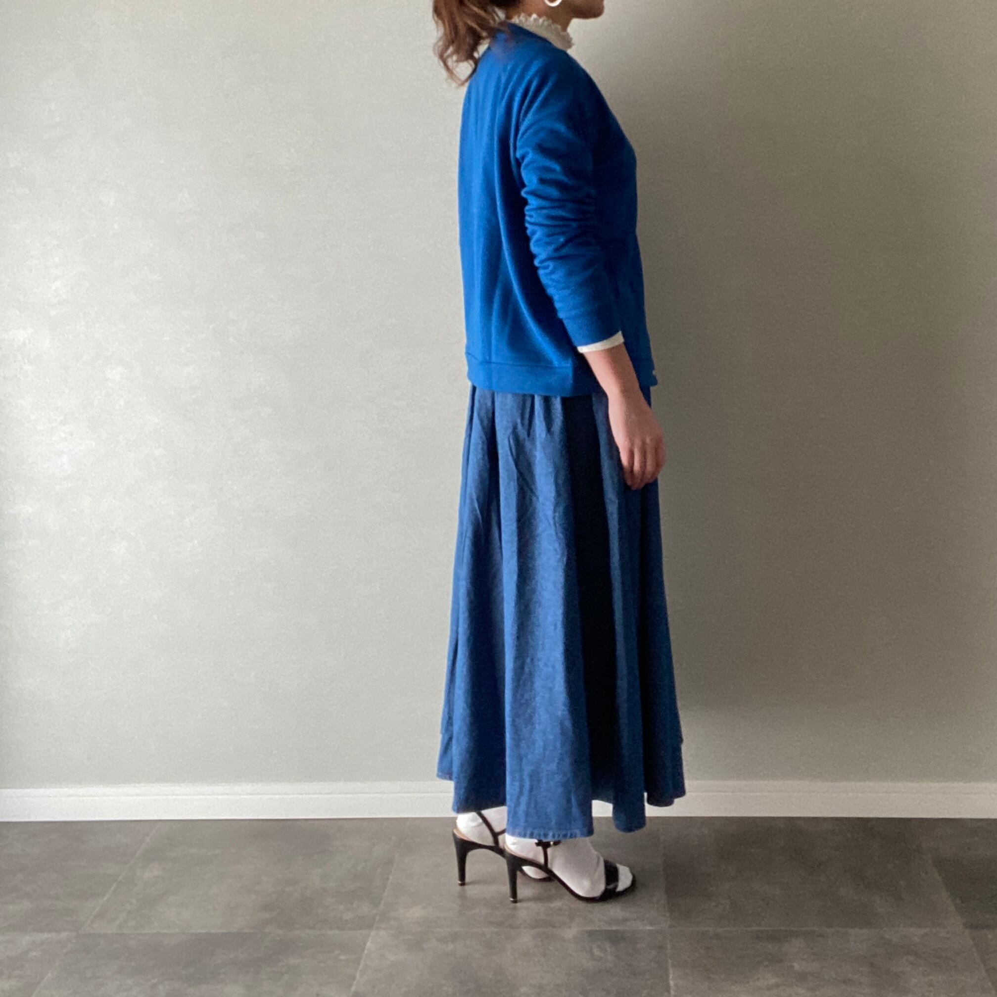 キレイ色☆カーディガン ドットボタン やわらかコットン ブルー M〜Lサイズ 【3012107】