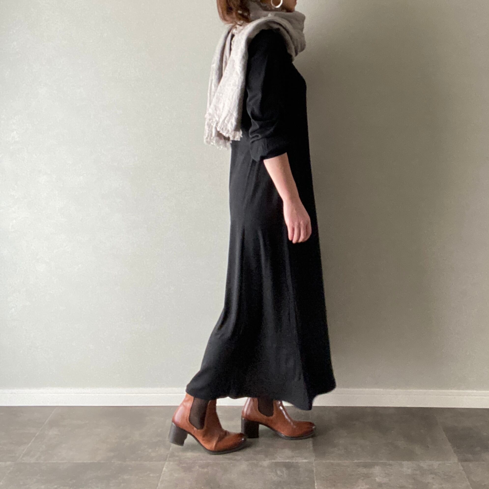 ワンピース クルーネック やわらか素材 体型カバー ブラック フリーサイズ 【3011812】