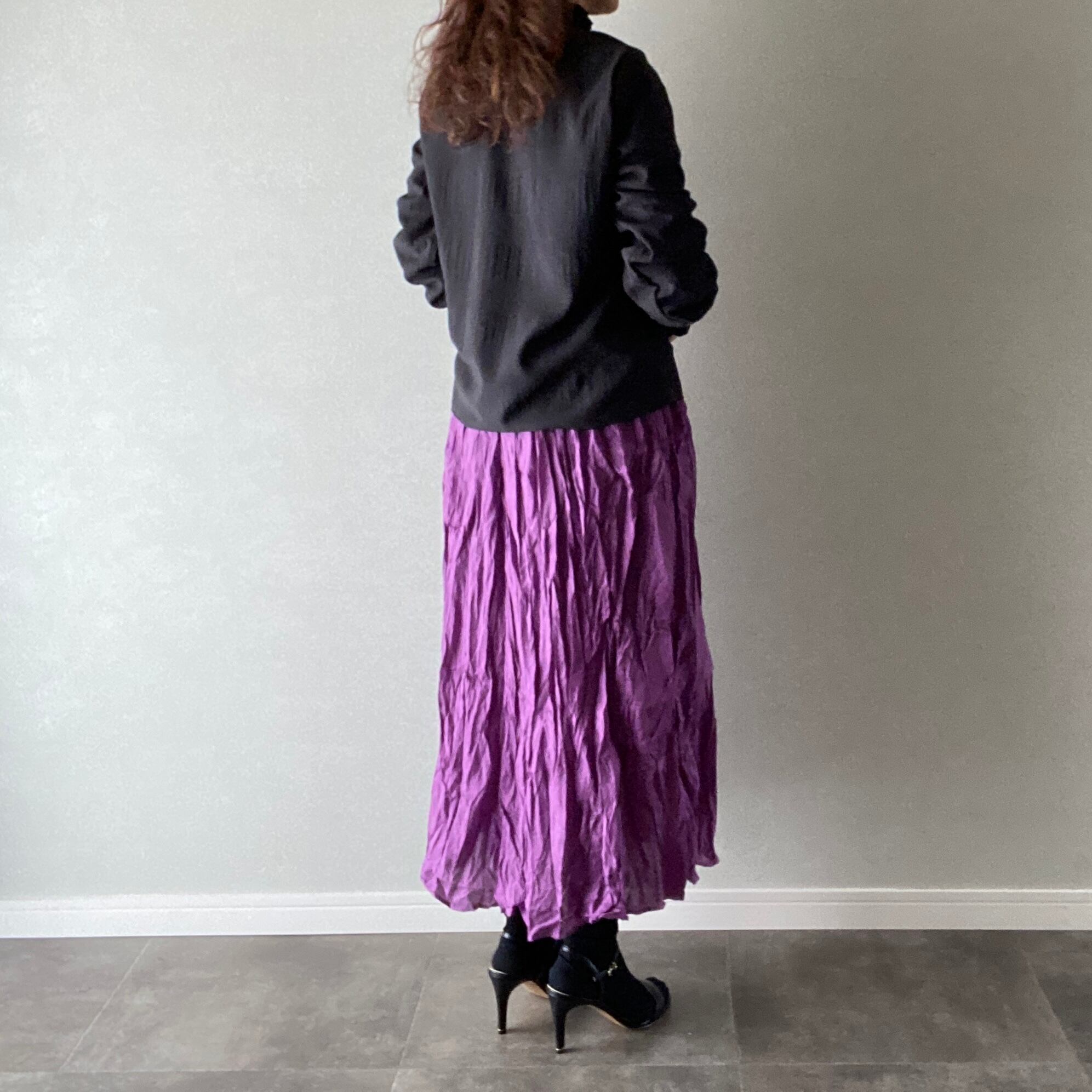 スカート シワ加工 フレア 裏地付き パープル Mサイズ【3031618】