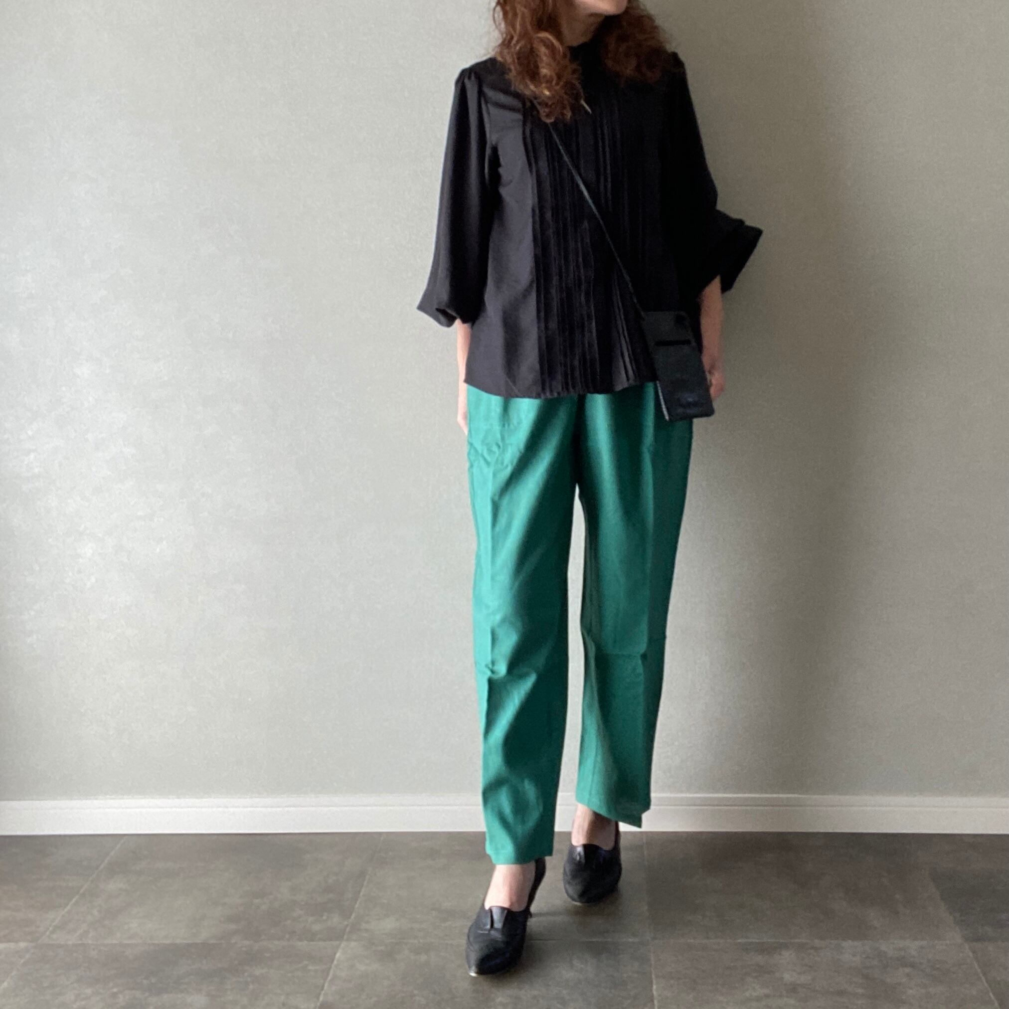 パンツ 差し色コーデ☆ 体型カバー ウエストゴム グリーン Mサイズ【3032814】
