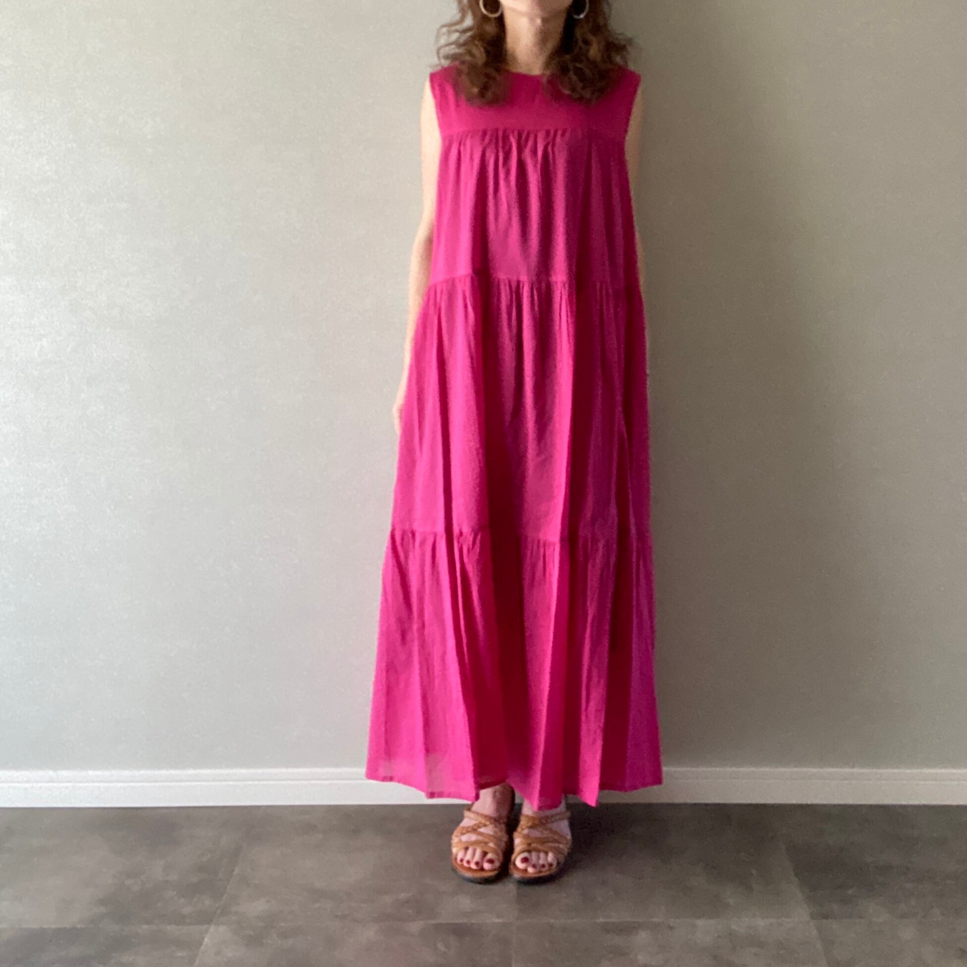 ワンピース ノースリーブ ティアード ギャザー ピンク M〜Lサイズ【3050124】
