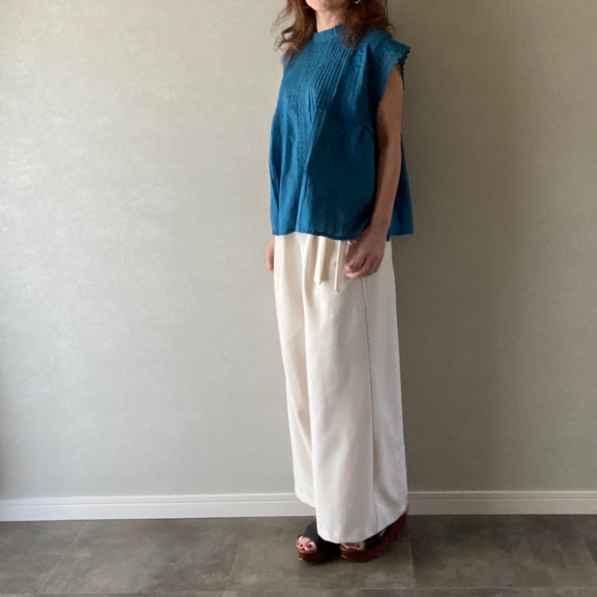 カットソー フレンチスリーブ ブルー フリーサイズ 【3042006】