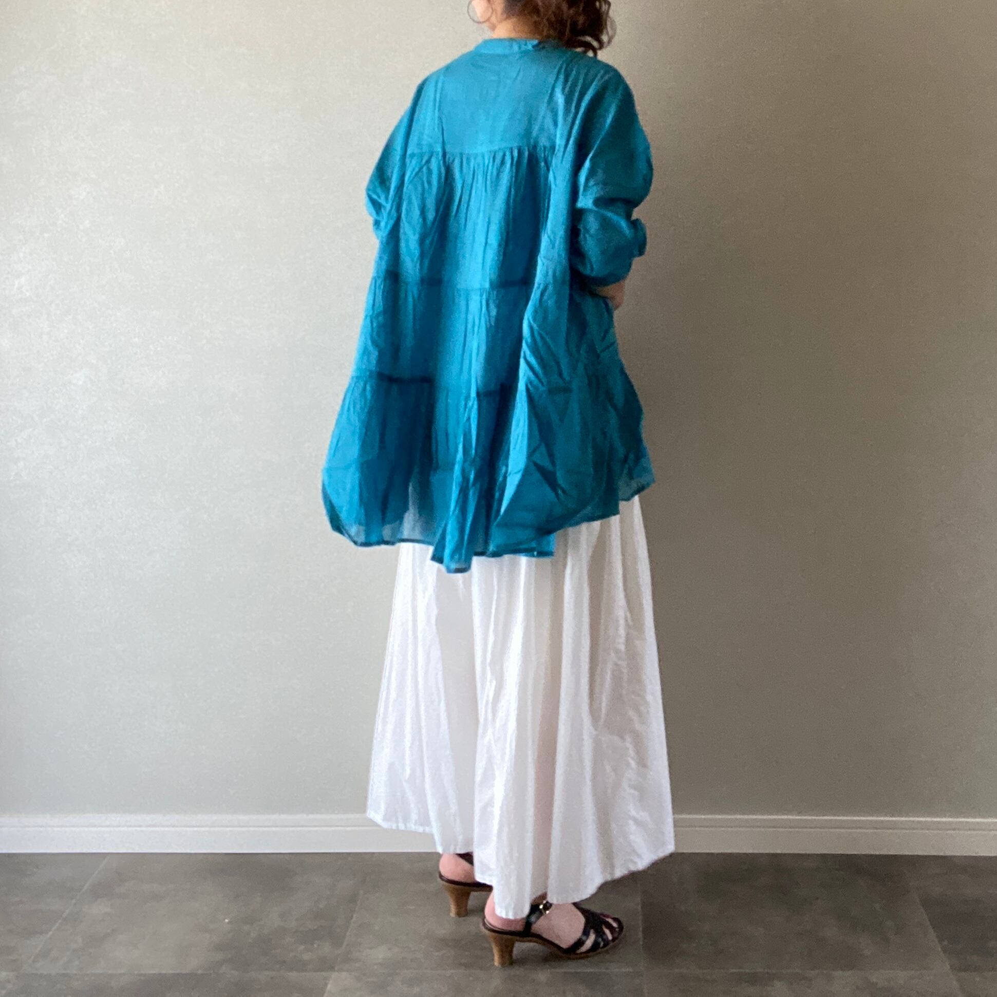 ブラウス 七分袖 アシンメトリー ティアード ブルー フリーサイズ 【3060229】