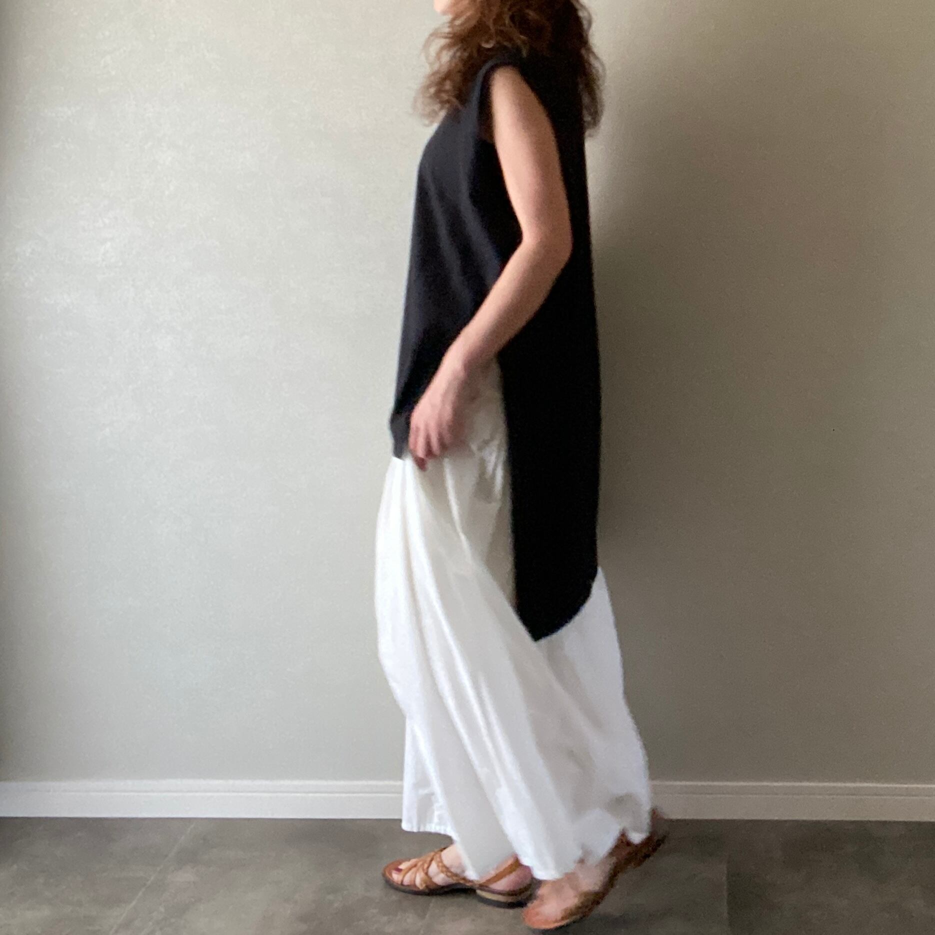 カットソー ノースリーブ アシンメトリー ロング丈 ブラック フリーサイズ 【3070601】