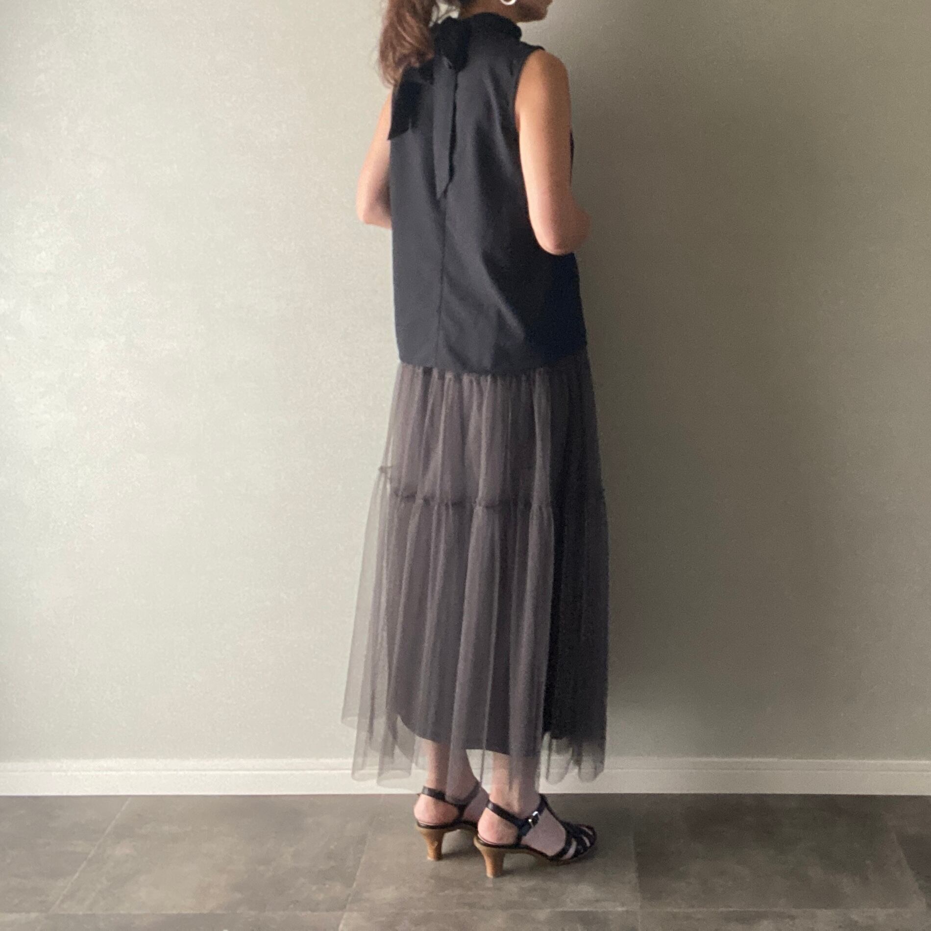 スカート チュール ティアード チャコール フリーサイズ【3080304】