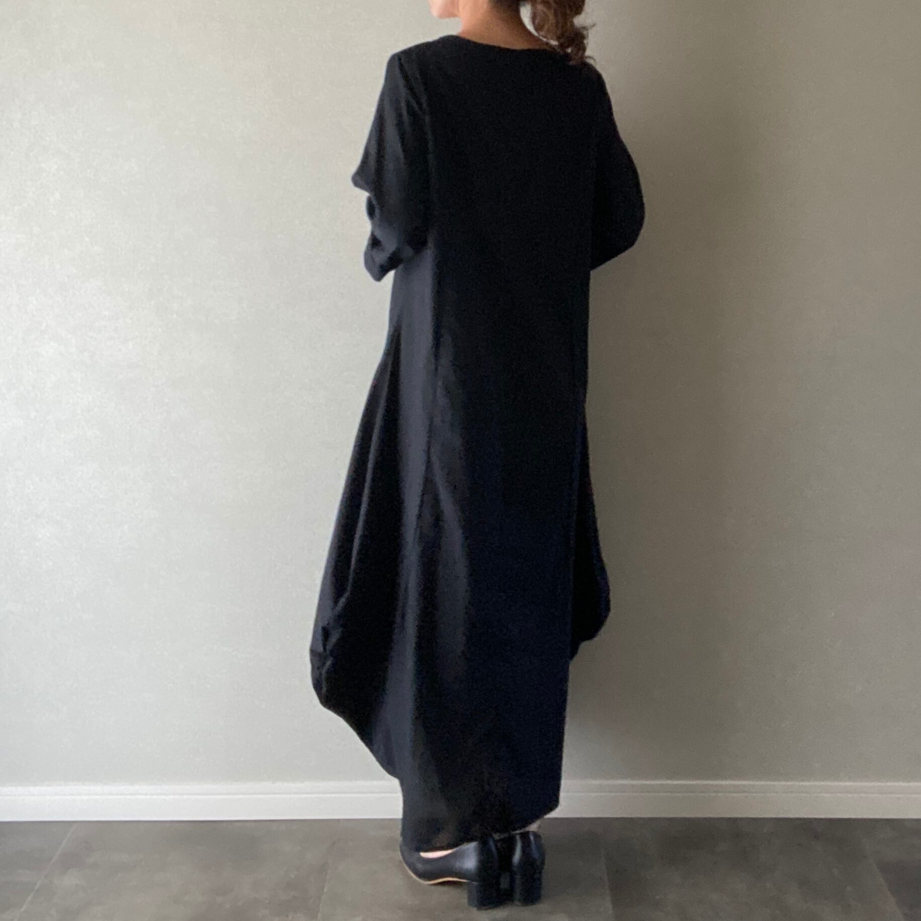 ワンピース 変形シルエット ロング ブラック Lサイズ【3090362】
