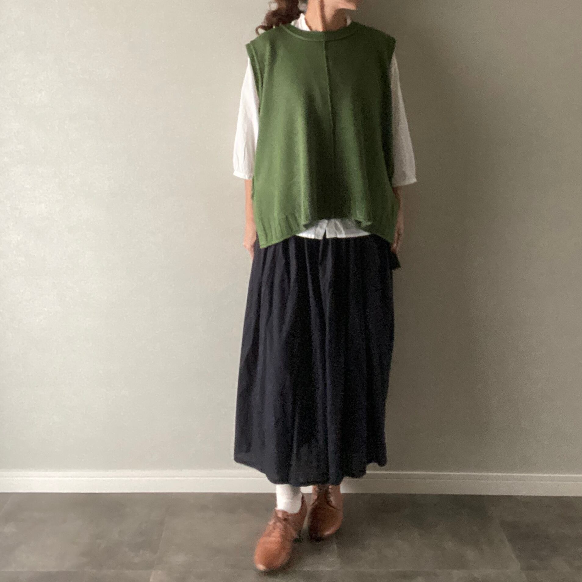 ベスト ニット スリット アシンメトリー グリーン フリーサイズ 【3101155】