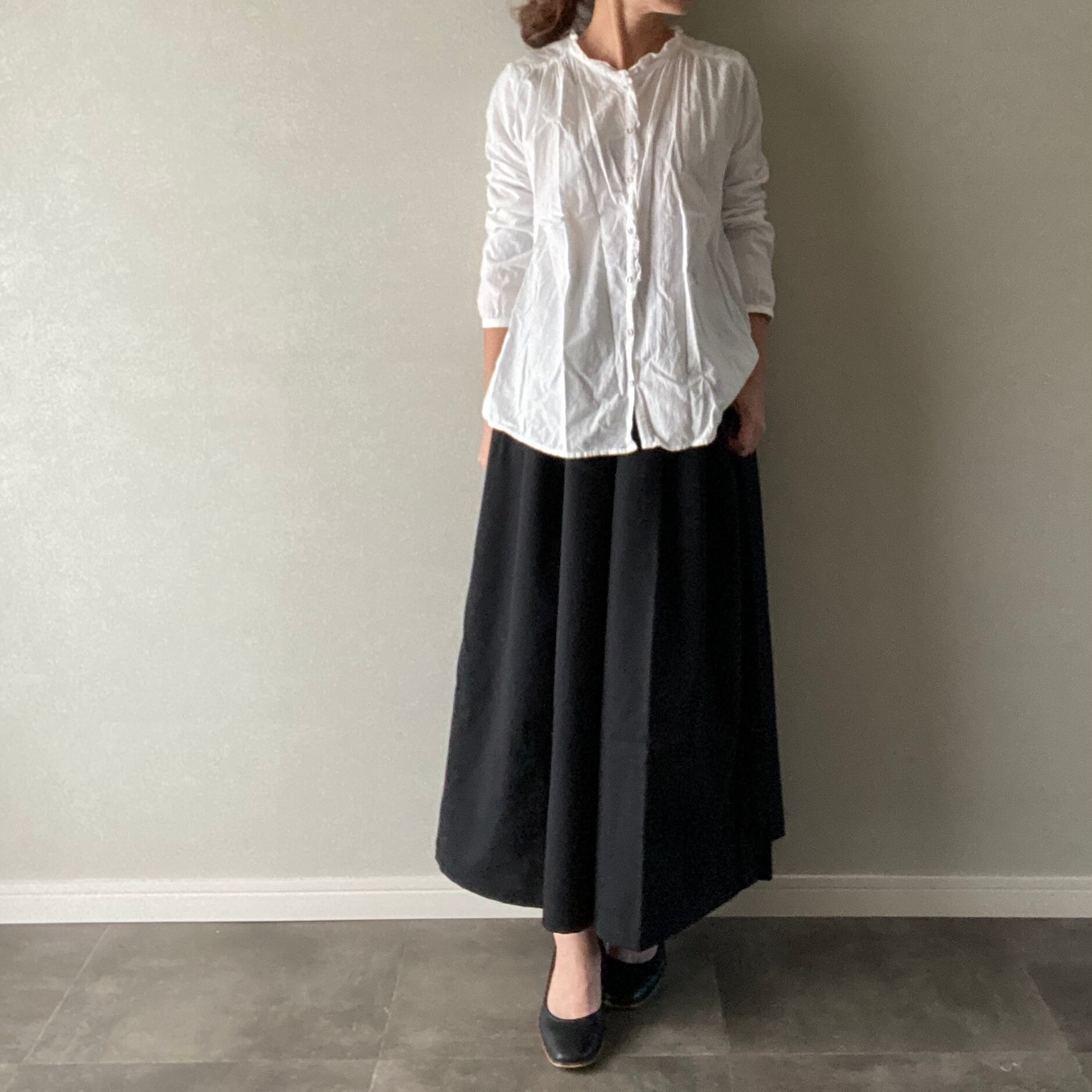 ワイドパンツ スカート風 タック 厚手 ウエストゴム ブラック フリーサイズ【3101131】