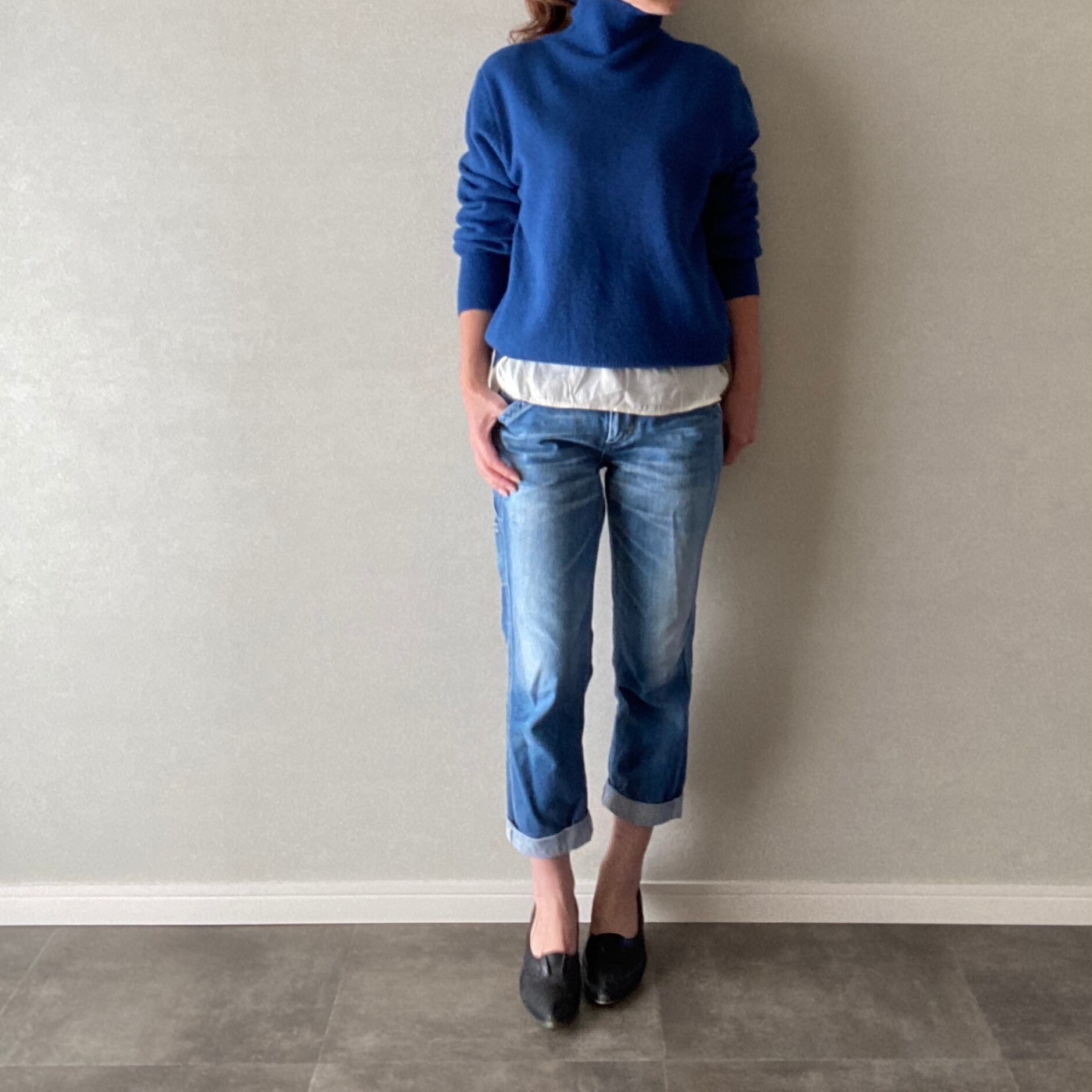 ニット ハイネック 長袖 体型カバー ブルー フリーサイズ 【3120115】