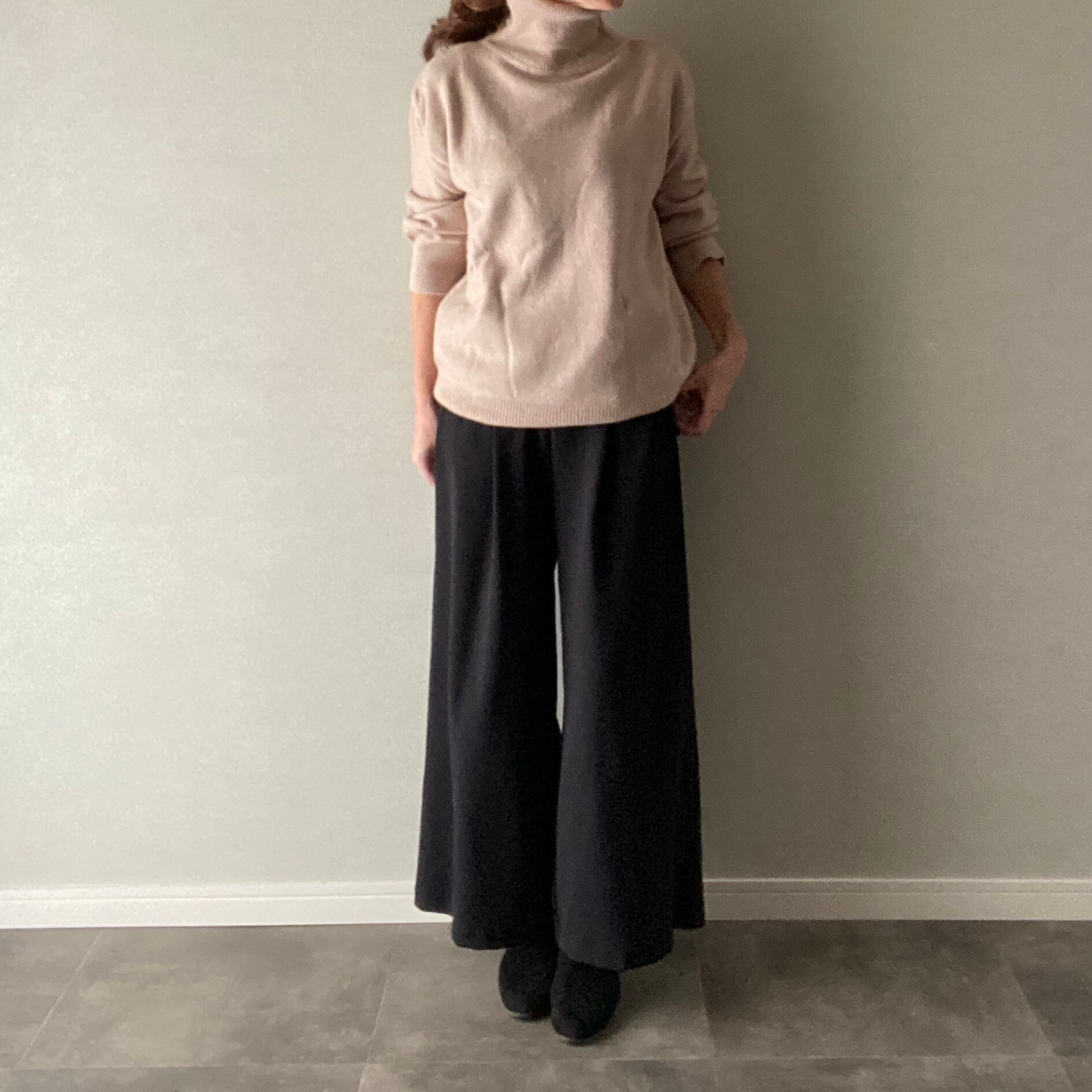ニット ハイネック 長袖 リブ 体型カバー ベージュ フリーサイズ 【3120102】