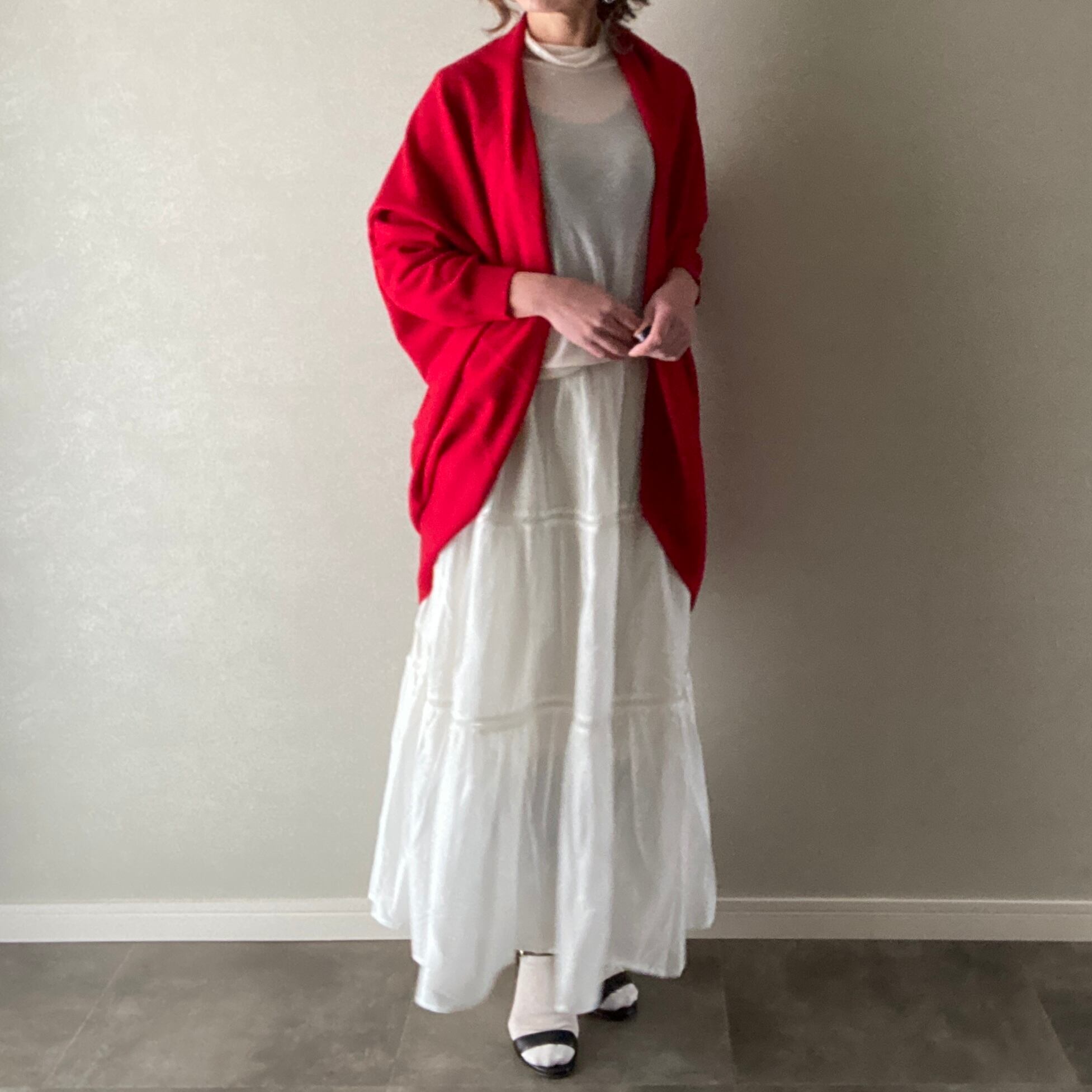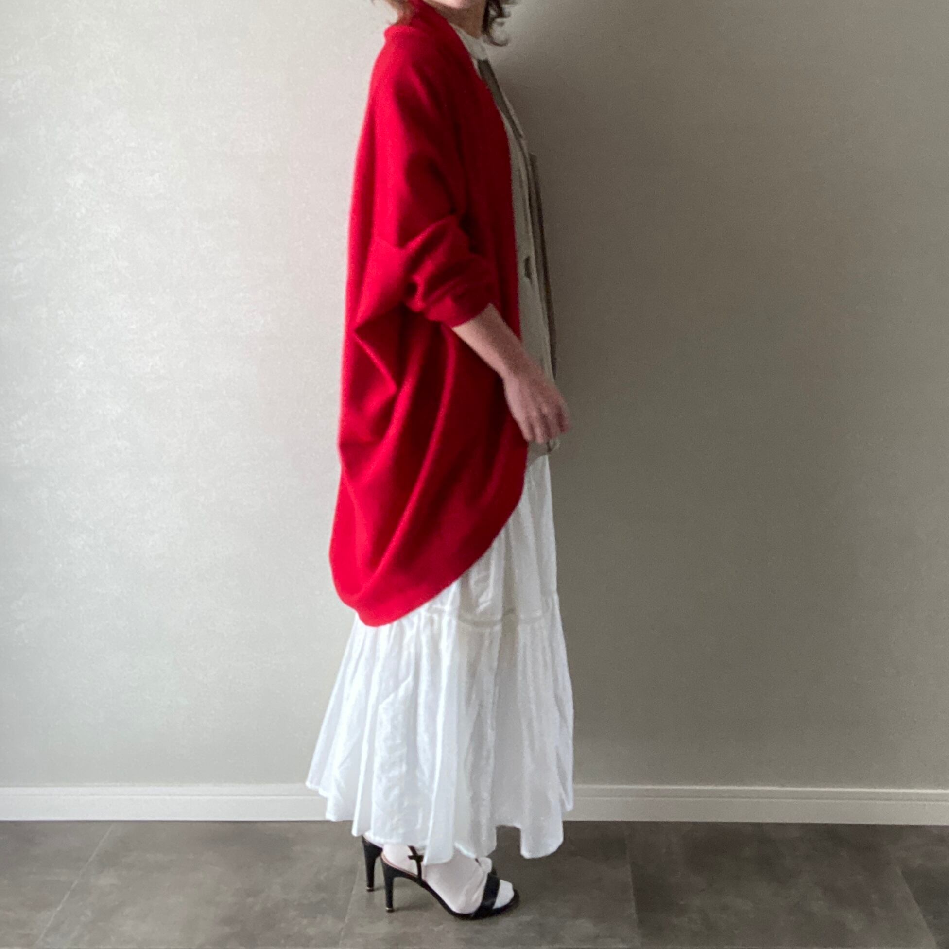 カーディガン ニット ウール ドルマン アシンメトリー レッド フリーサイズ【031110】