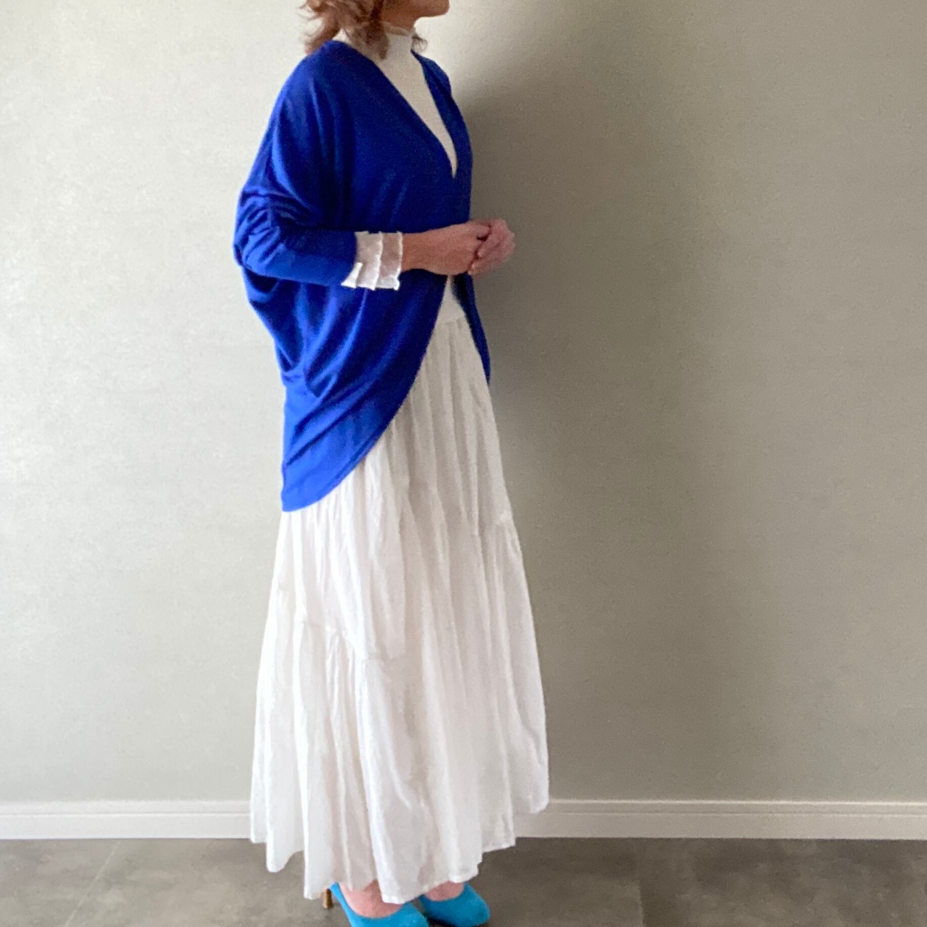 【再入荷】カーディガン UV加工 ドルマン アシンメトリー ブルー フリーサイズ【051102】
