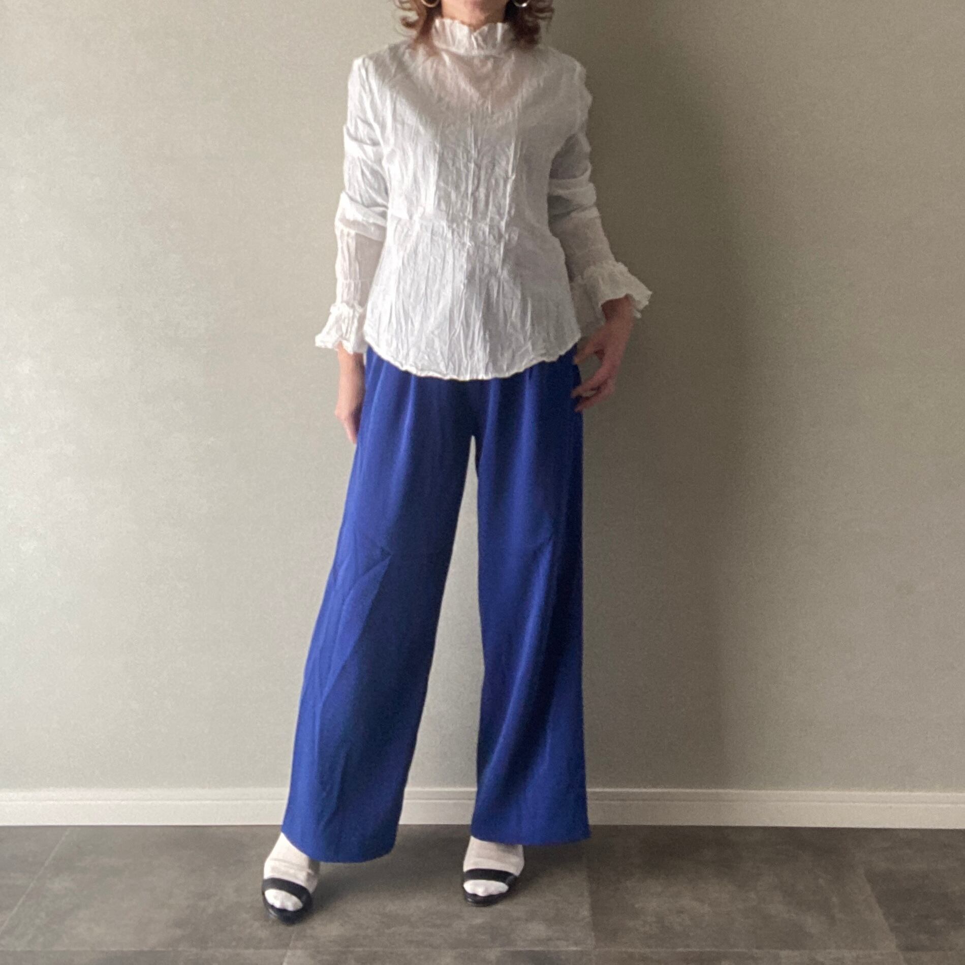 ワイドパンツ 差し色コーデ☆タック ブルー Mサイズ【040504】