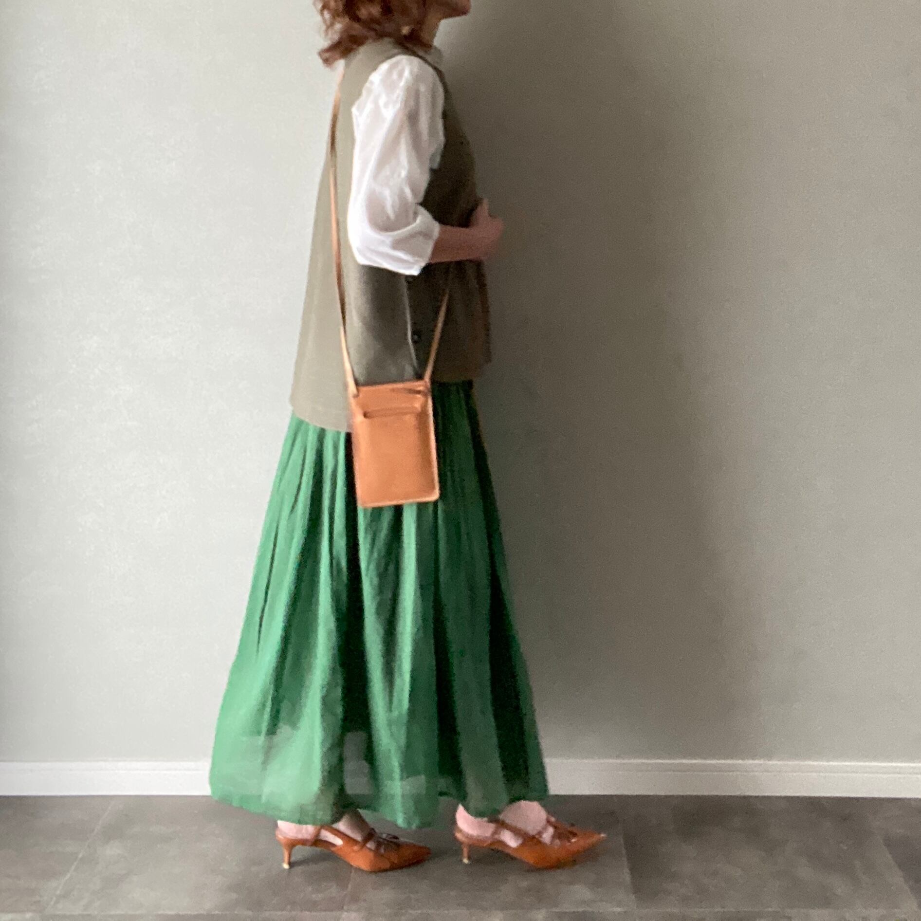 スカート ギャザー コットン ウエストゴム グリーン フリーサイズ【042209】