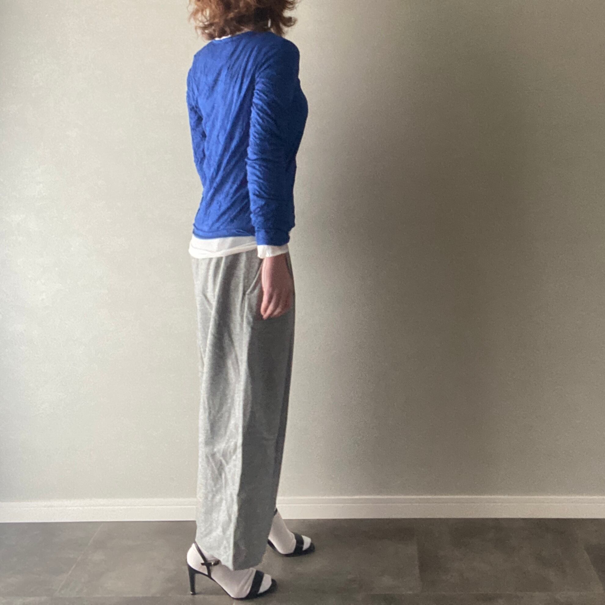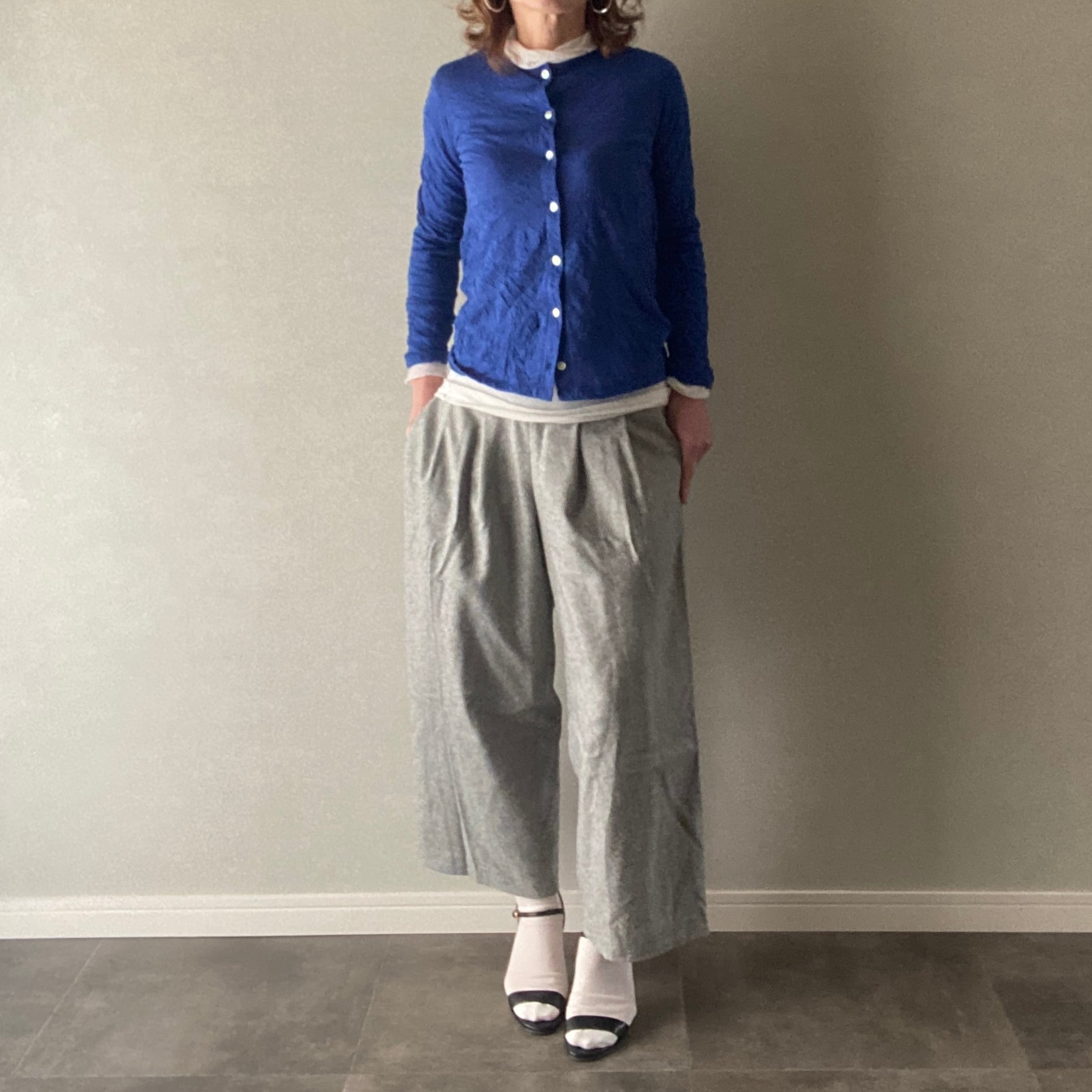 カーディガン シワ加工 やわらか素材 長袖 ブルー フリーサイズ 【040507】