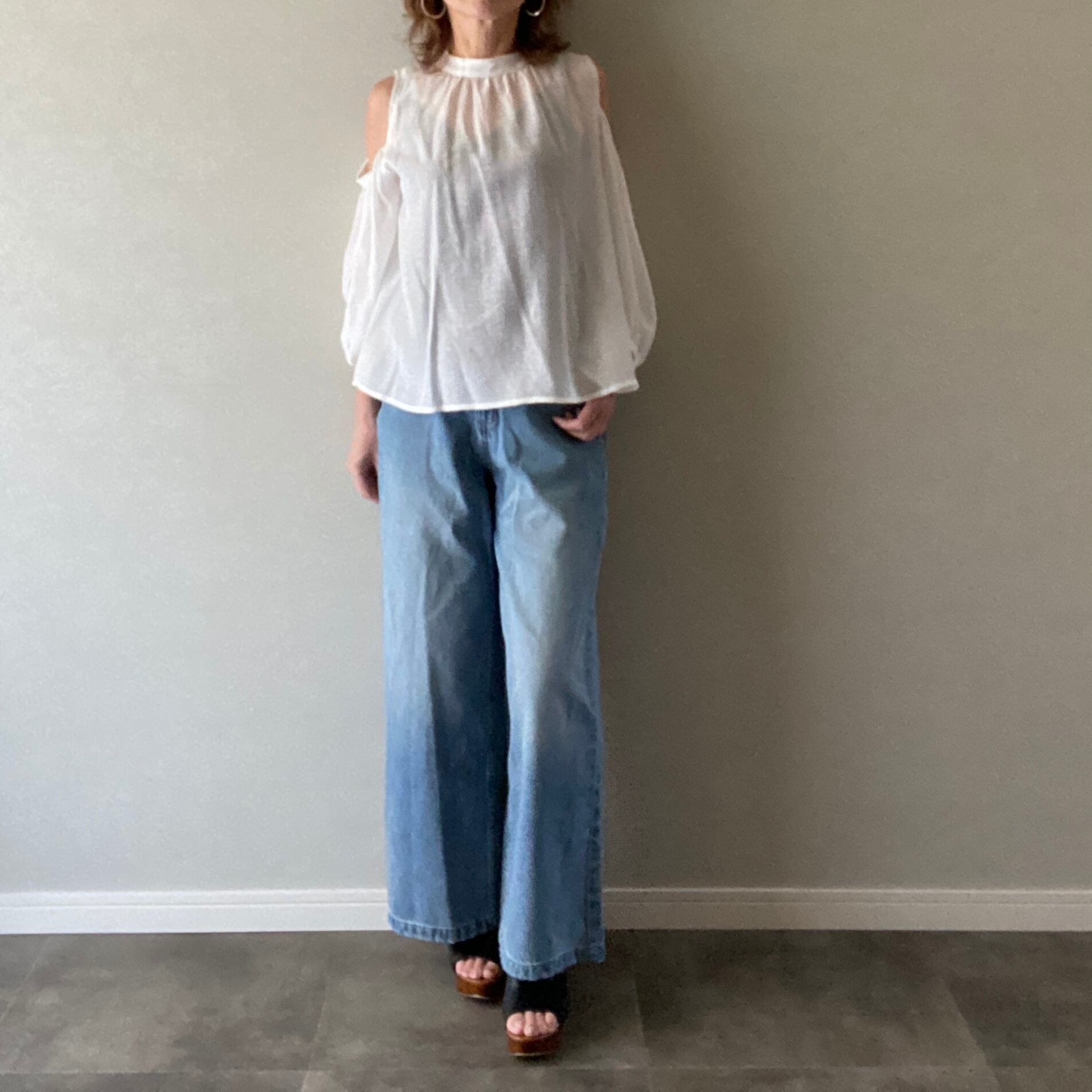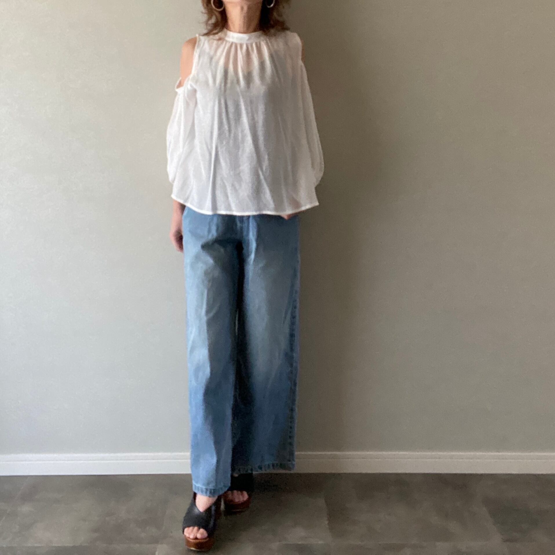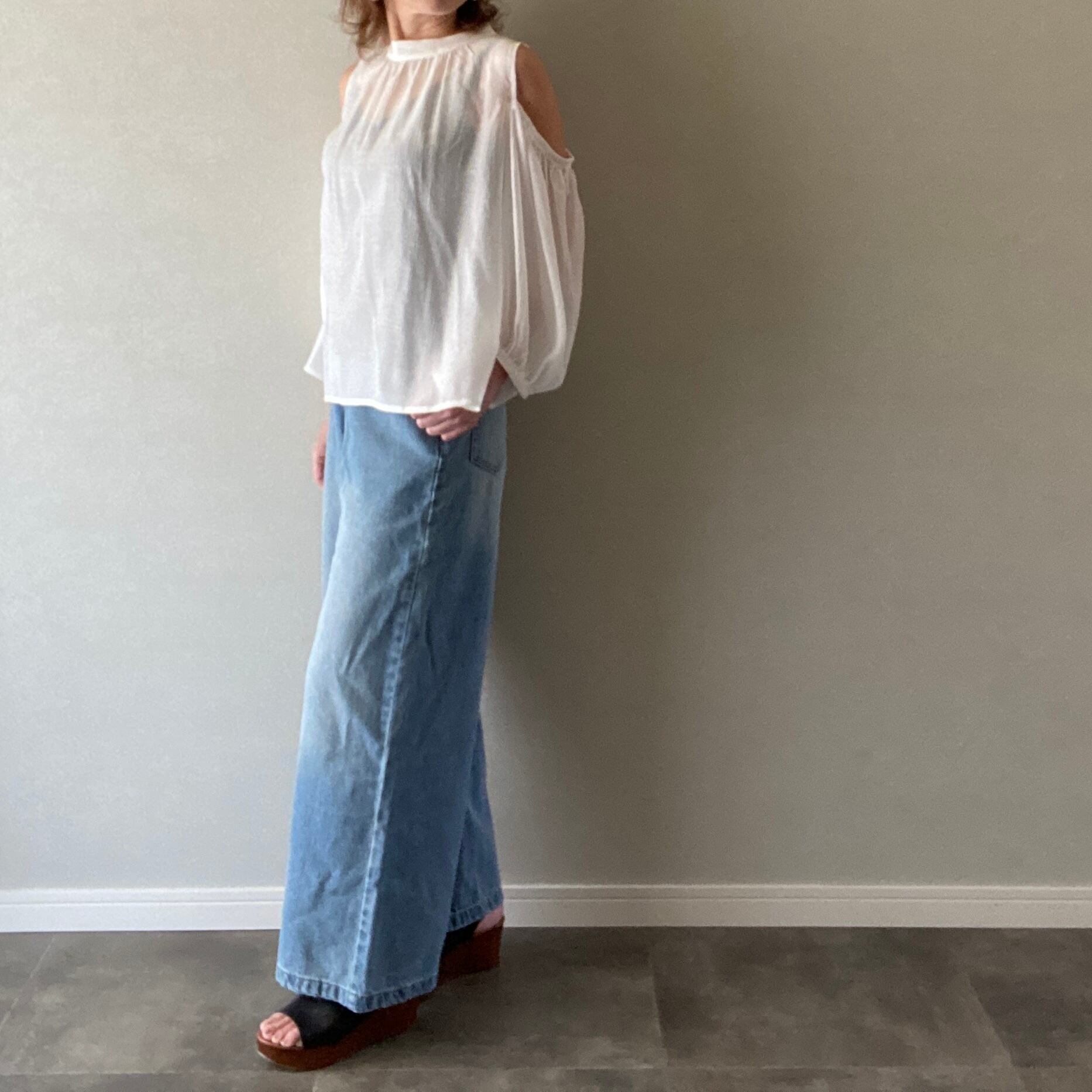 カットソー オープンショルダー 肩出し ホワイト フリーサイズ 【021505】