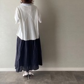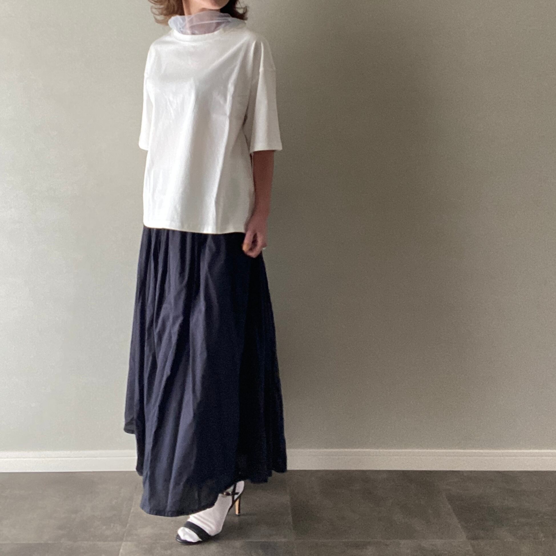 カットソー レイヤード チュール襟 ホワイト×ライトブルー ゆったり Sサイズ 【022218】