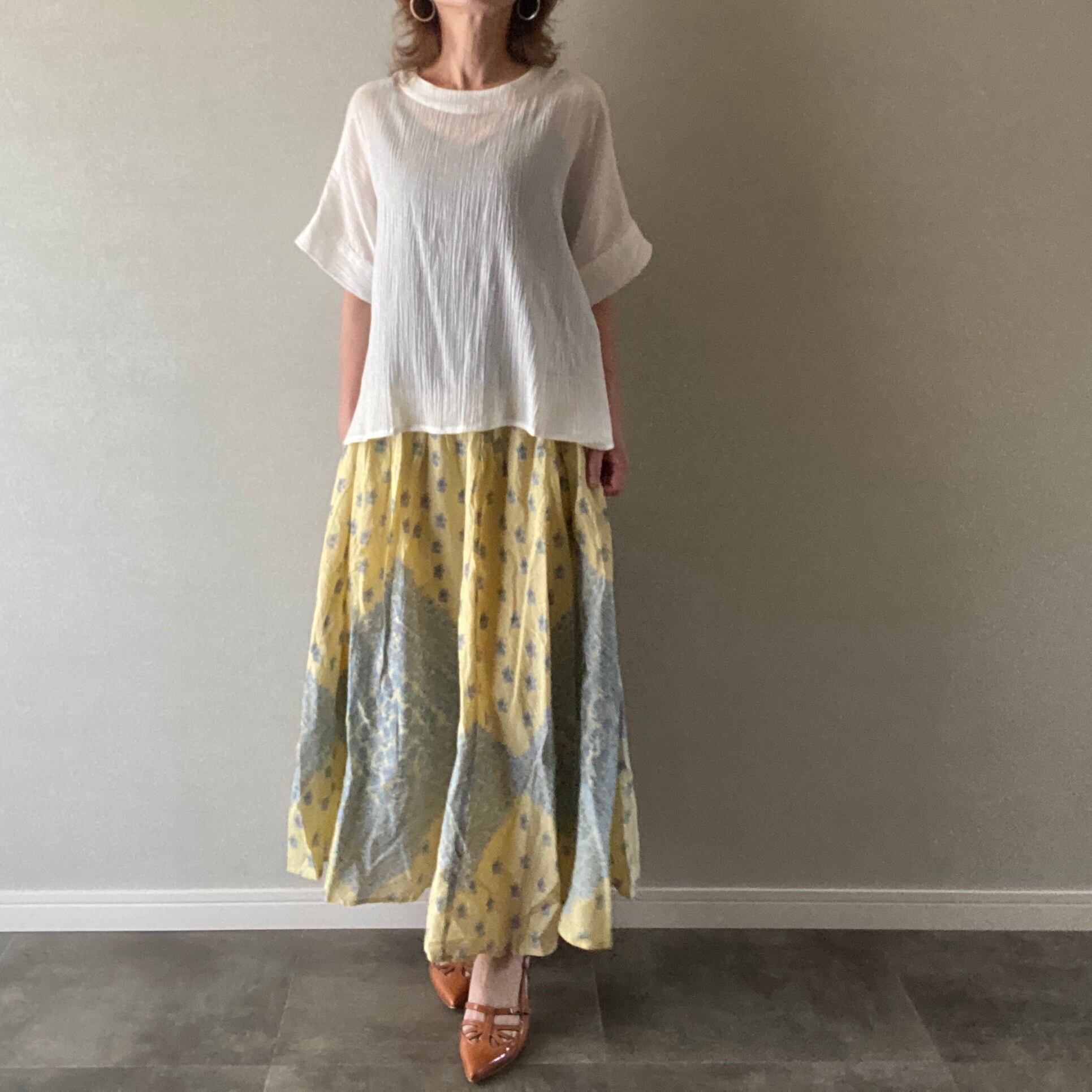 カットソー ラウンドネック 五部袖 アシンメトリー ホワイト フリーサイズ 【051133】