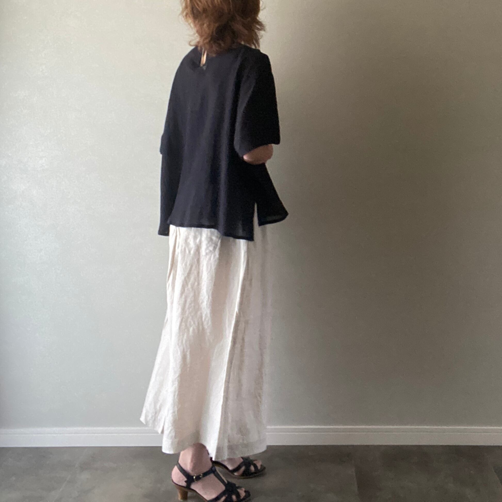 カットソー ラウンドネック 五部袖 アシンメトリー ブラック フリーサイズ 【051134】