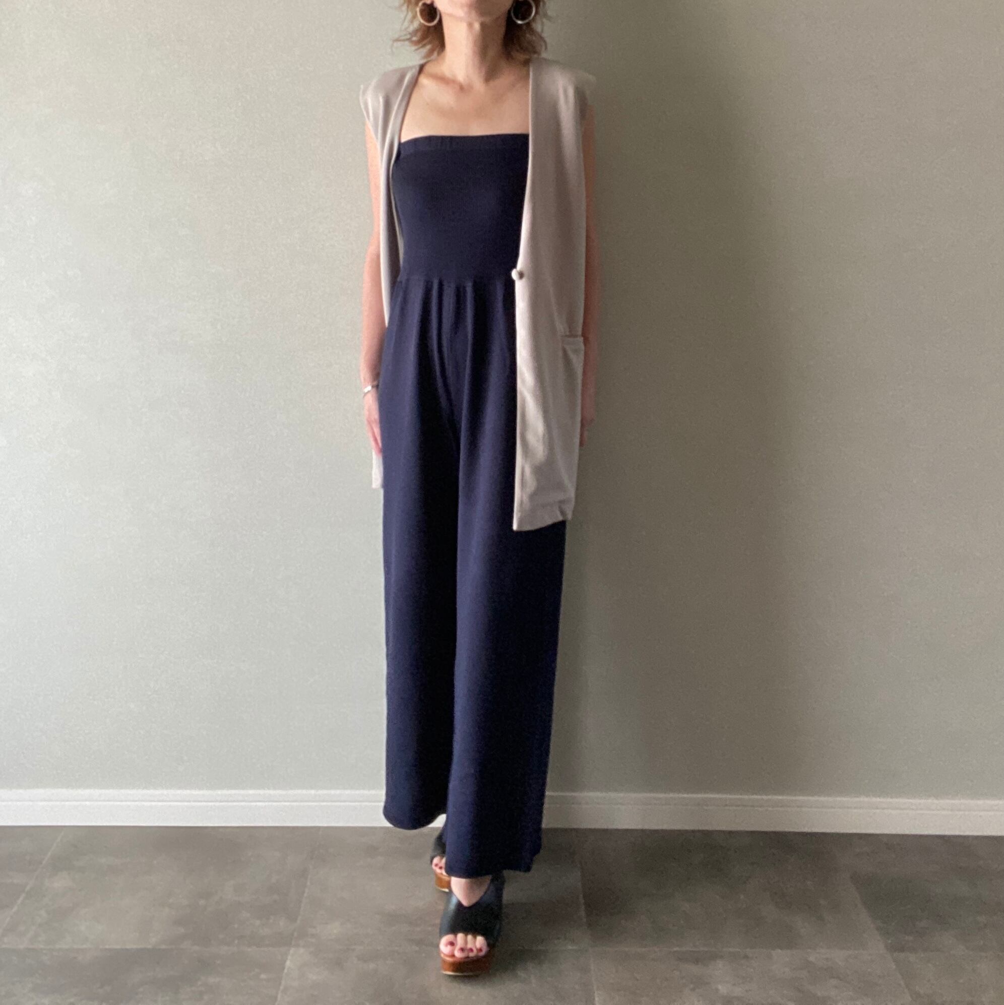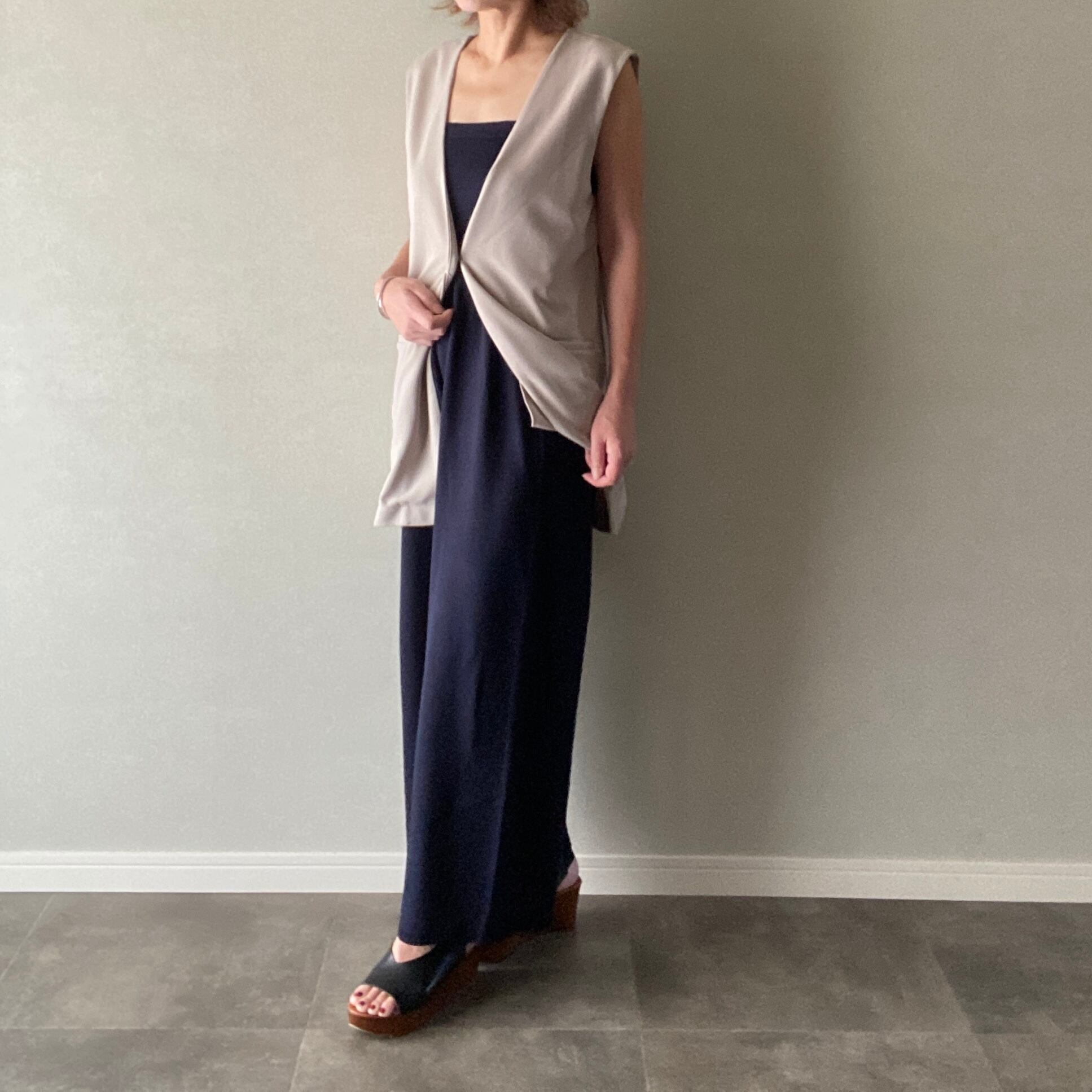ジレ Vネック ベスト ボタン ポケット付き グレージュ Mサイズ 【040534】