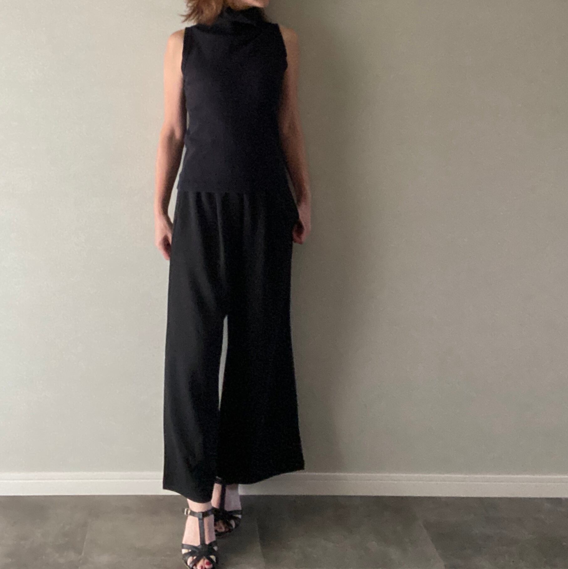 ワイドパンツ タック ストレッチ ブラック Mサイズ【080705】